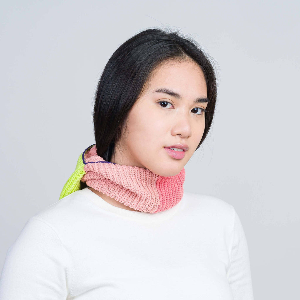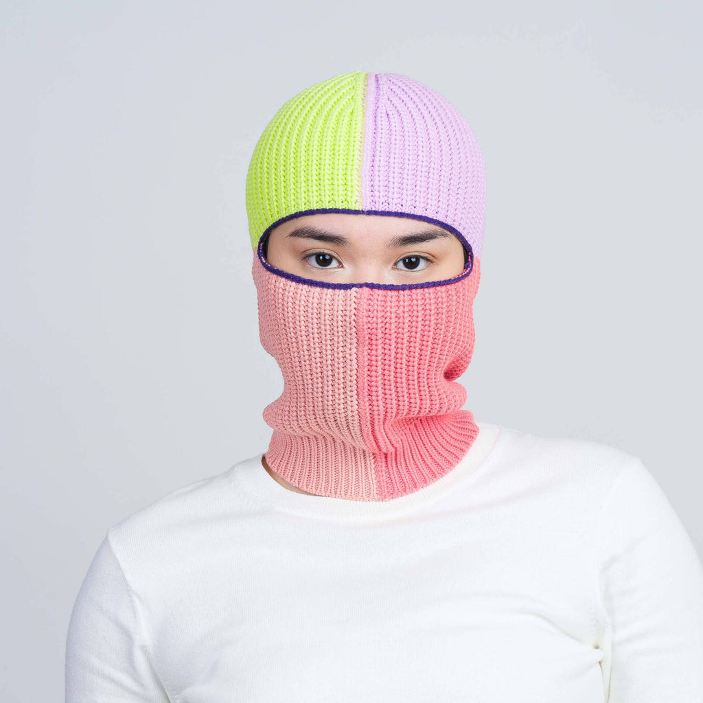 VERLOOP | knitsA bold twist on a classic knit balaclava. Comfy ribbed knit with modern, unexpected color combos and surprise contrast trim. Adjustable opening can be worn three ways: over the mouth, under the chin, or pulled down into a cozy neckwarmer. Designed to stand out and keep you warm on a cold winter's day. Fit for the ski slopes or running errands in the city.