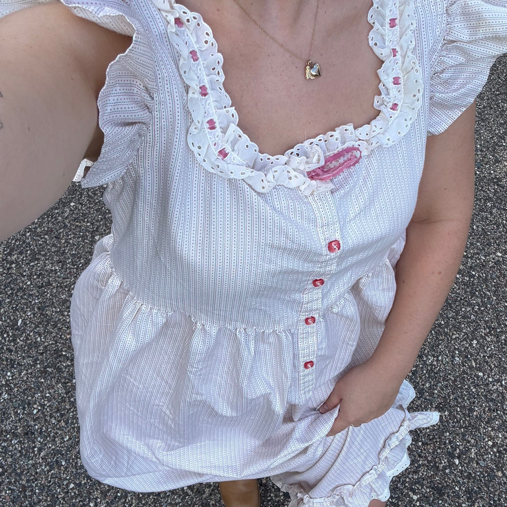 J'adore BeddorDarling vintage handmade prairie dress with ruffle details. This dress has no tags, but feels to be 100% cotton.