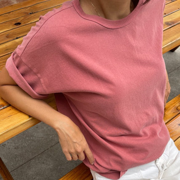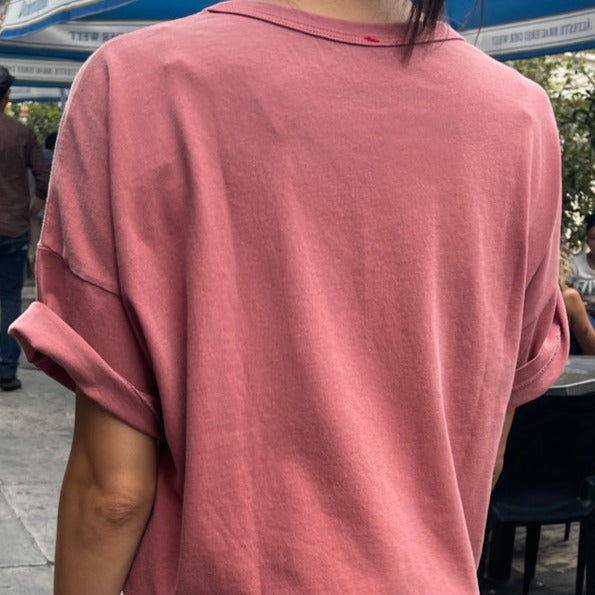 Super soft, dropped shoulder tee with a slightly boxy fit. The dying and washing process gives each garment unique character. Please allow for slight color and fit variation for each garment.