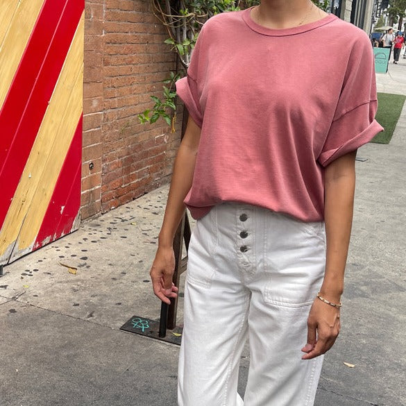 Le Bon ShoppeLe Bon used the softest local 100% cotton low gauge knit. Garment washed and dyed each tee for a beautiful natural worn-in look. Fabric and garments are made in Los Angeles