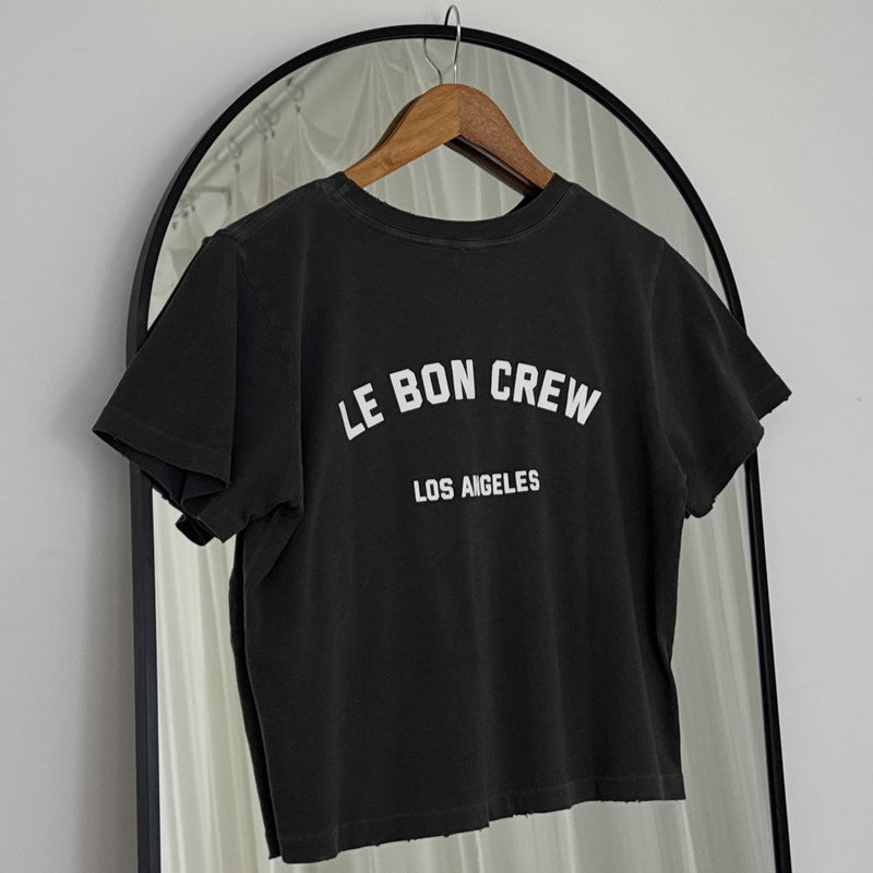 Le Bon ShoppeMeet the Darling Tee — It features a relaxed boxy silhouette that hits the waist perfectly, it offers gently distressed details and a 90's fade for true vintage lovers.