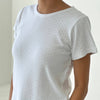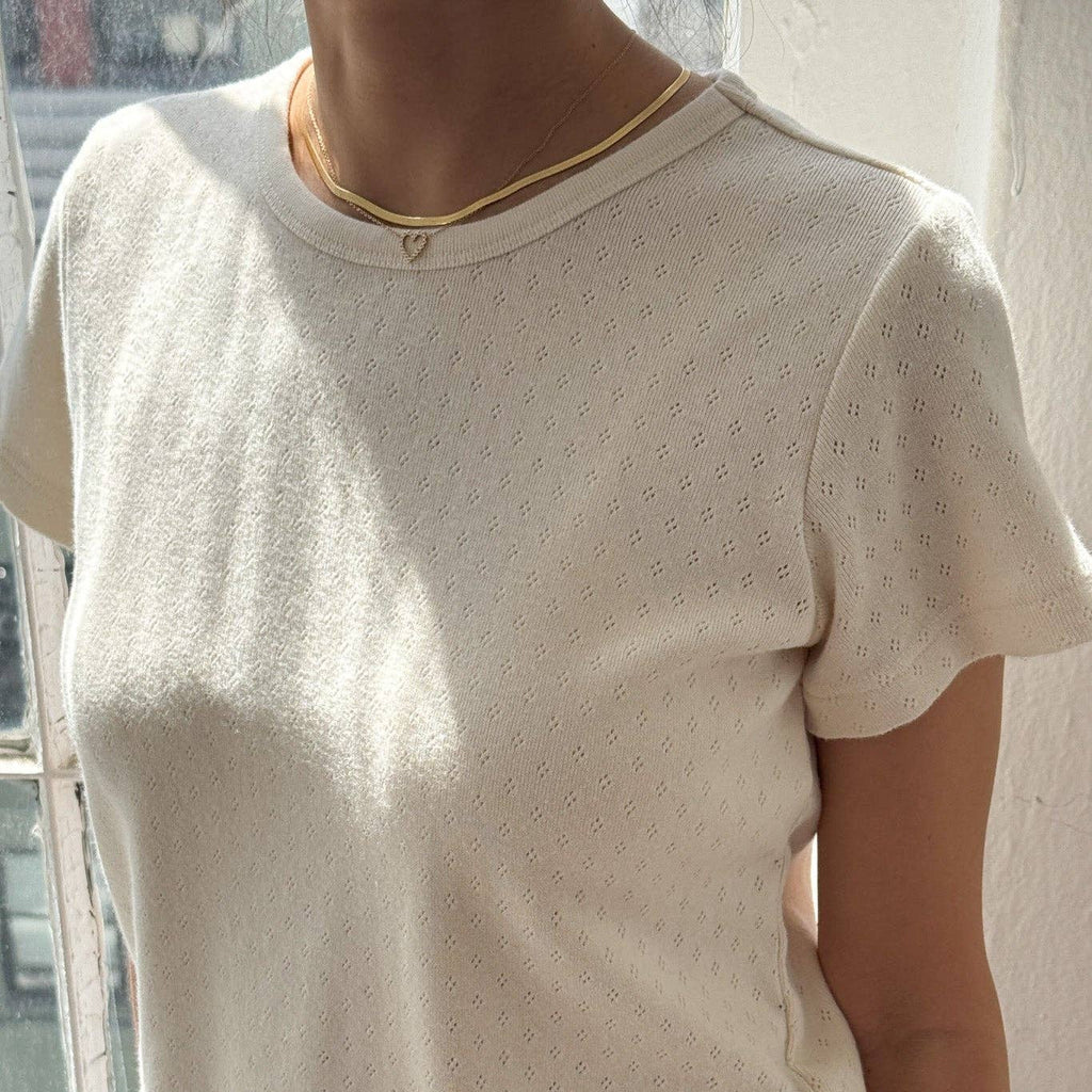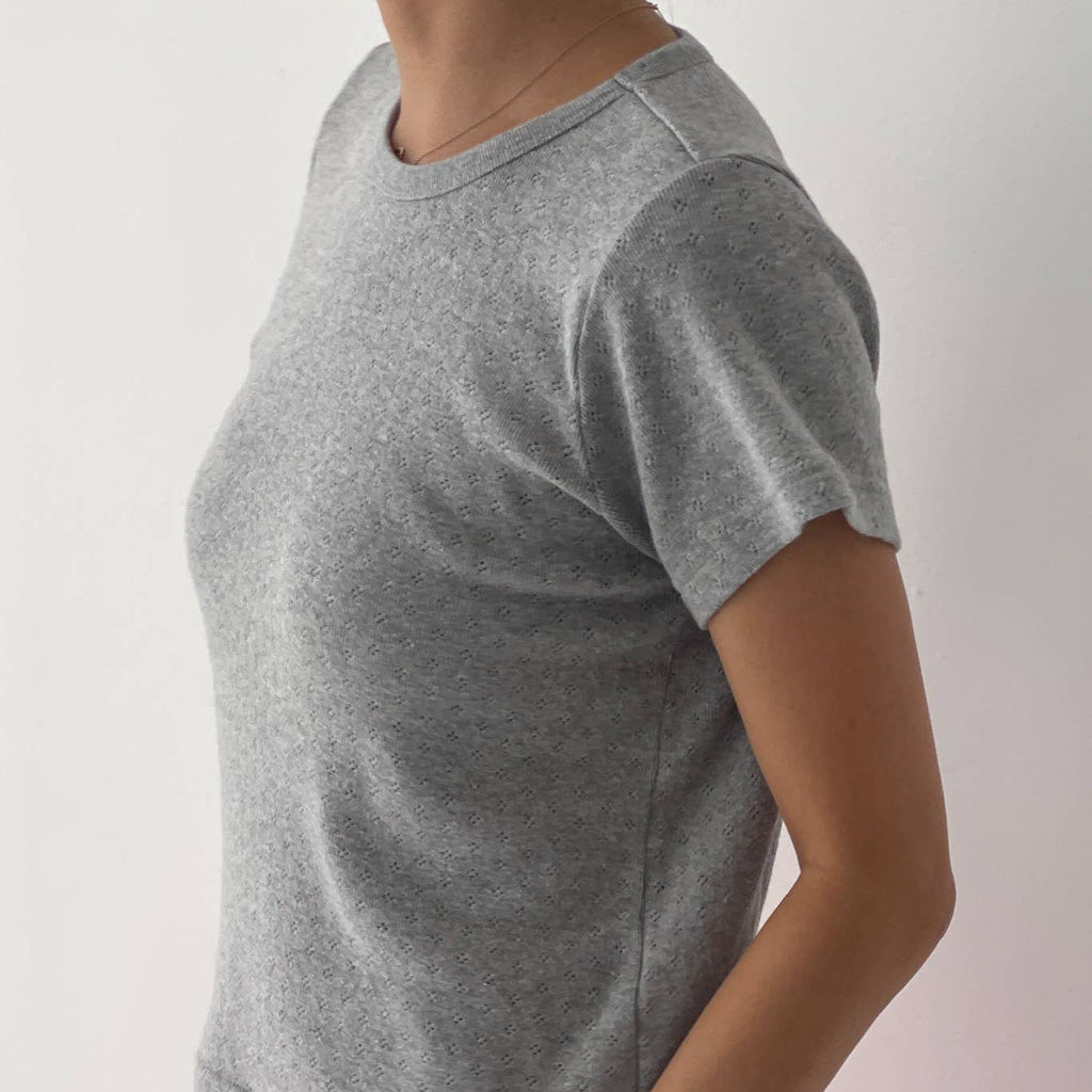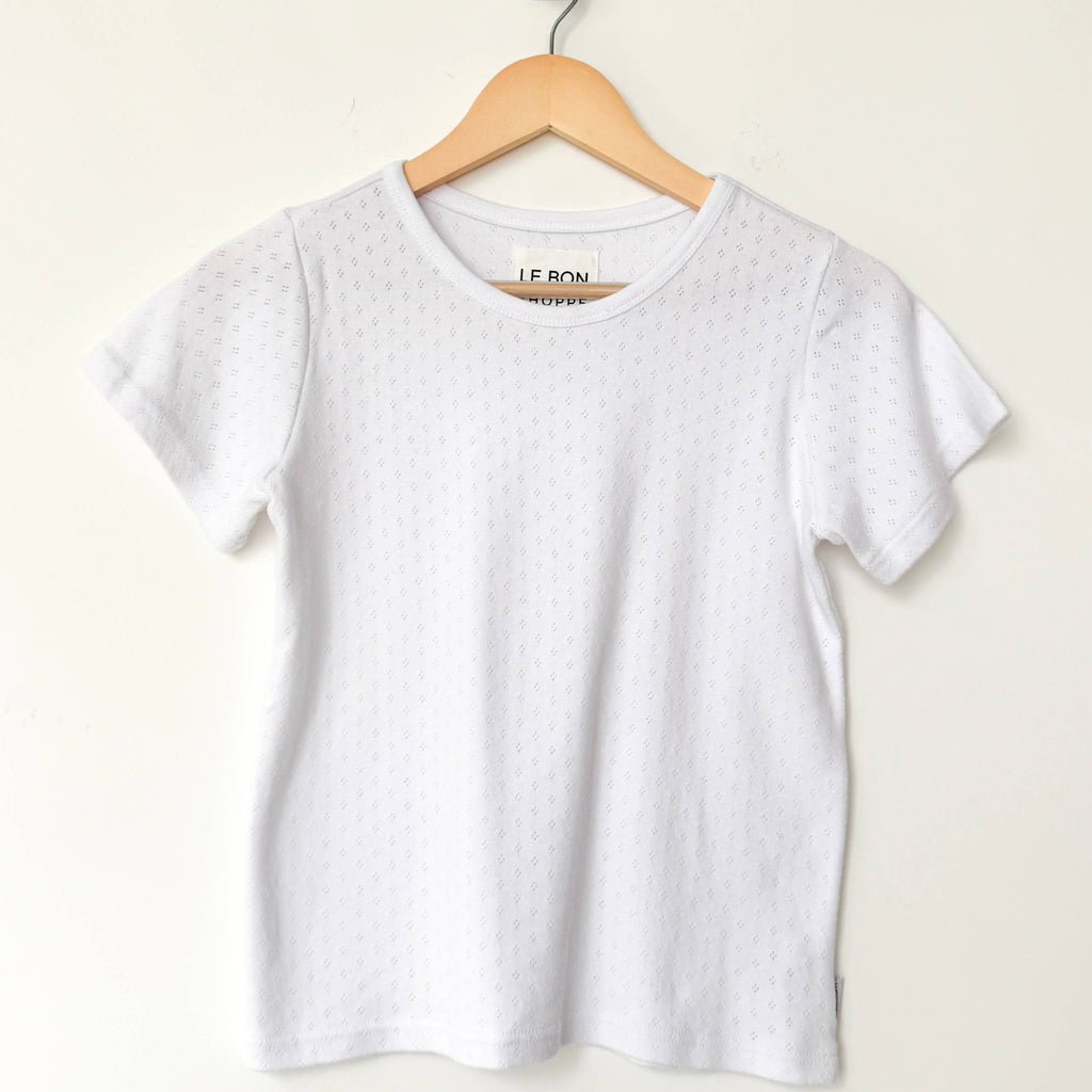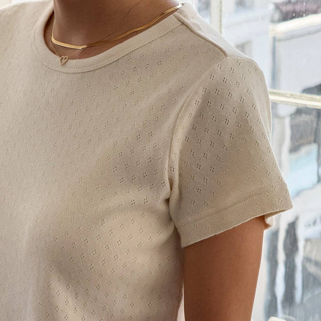 Le Bon ShoppeA dreamy take on the everyday tee. The 100% cotton jersey Pointelle Babe Tee is made from the same ultra-soft cotton pointelle jersey as Le Bon's Core Pointelle Collection—breathable and just the right weight for an ideal drape. With a timeless crew neckline, classic short sleeves, and a subtly cropped length, it fits like The Little Boy Tee (a fan favorite!). Feminine yet effortless, it's a versatile staple designed to move with you through every season.