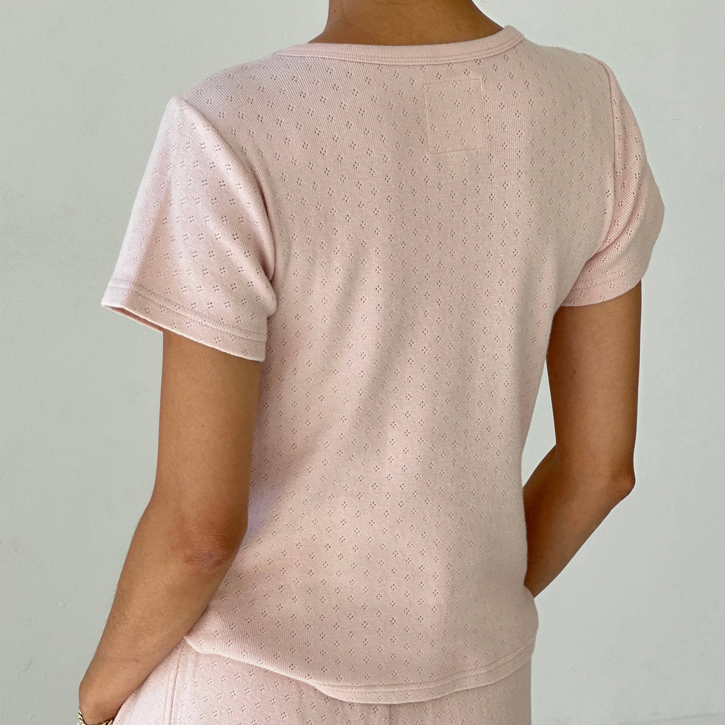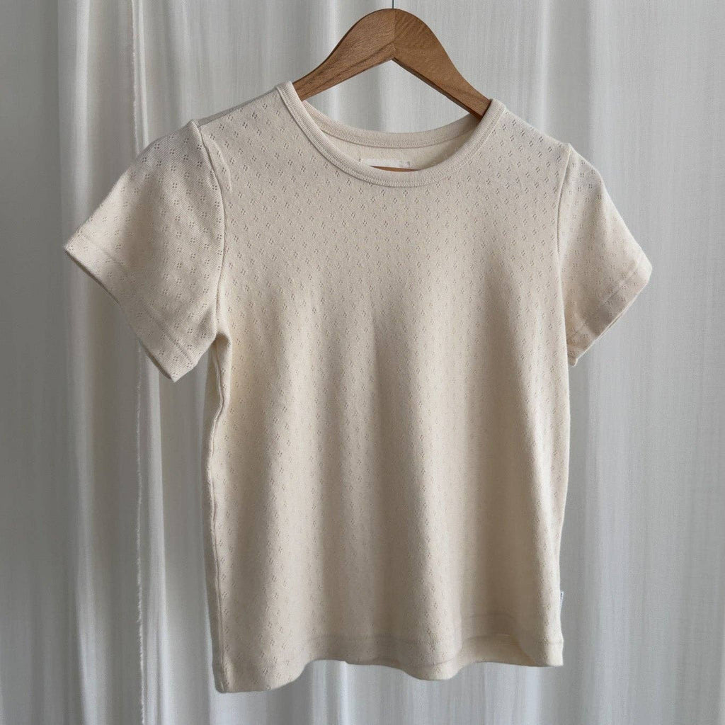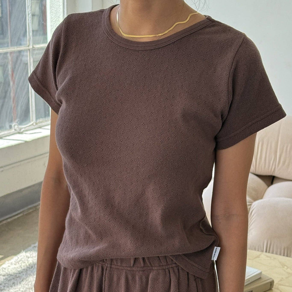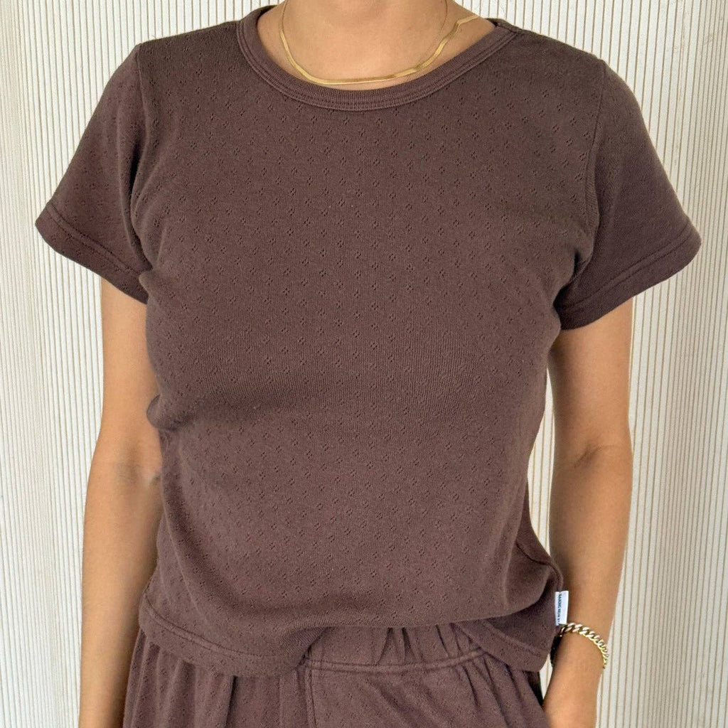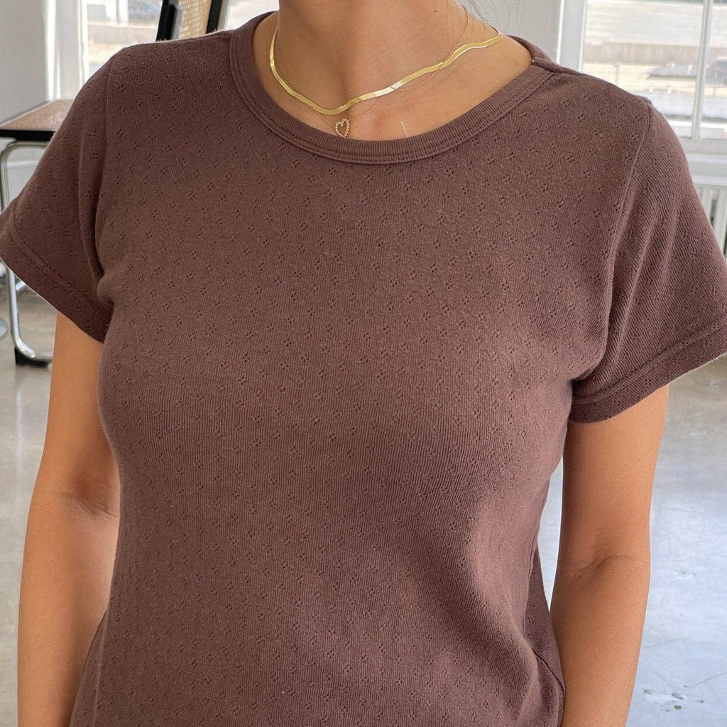 Le Bon ShoppeA dreamy take on the everyday tee. The 100% cotton jersey Pointelle Babe Tee is made from the same ultra-soft cotton pointelle jersey as Le Bon's Core Pointelle Collection—breathable and just the right weight for an ideal drape. With a timeless crew neckline, classic short sleeves, and a subtly cropped length, it fits like The Little Boy Tee (a fan favorite!). Feminine yet effortless, it's a versatile staple designed to move with you through every season.