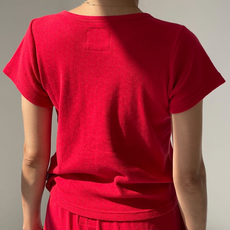 Le Bon ShoppeA dreamy take on the everyday tee. The Pointelle Babe Tee is made from the same ultra-soft cotton pointelle jersey as Le Bon's Core Pointelle Collection—breathable and just the right weight for an ideal drape. With a timeless crew neckline, classic short sleeves, and a subtly cropped length, it fits like The Little Boy Tee (a fan favorite!). Feminine yet effortless, it's a versatile staple designed to move with you through every season.