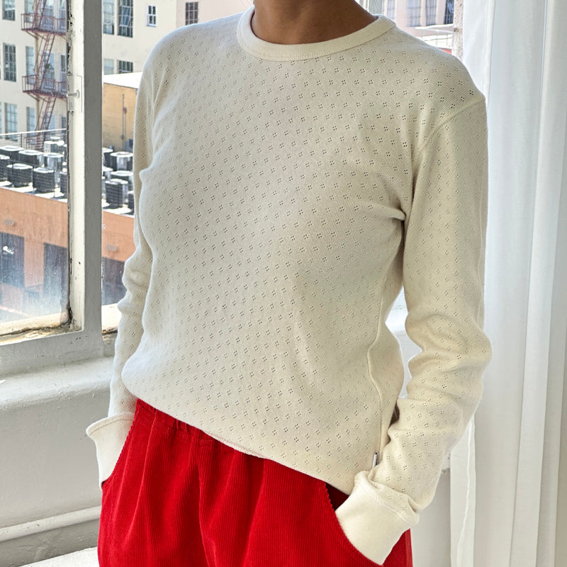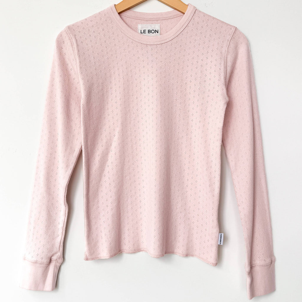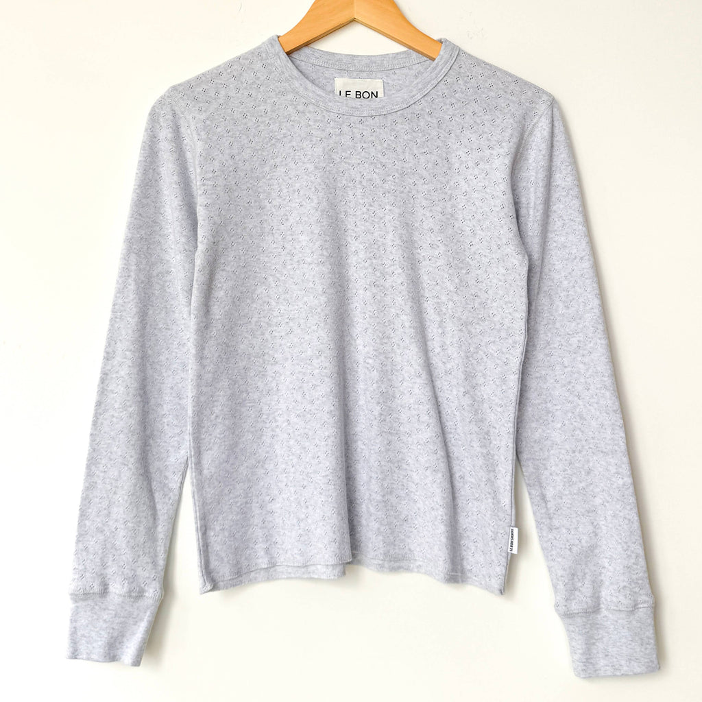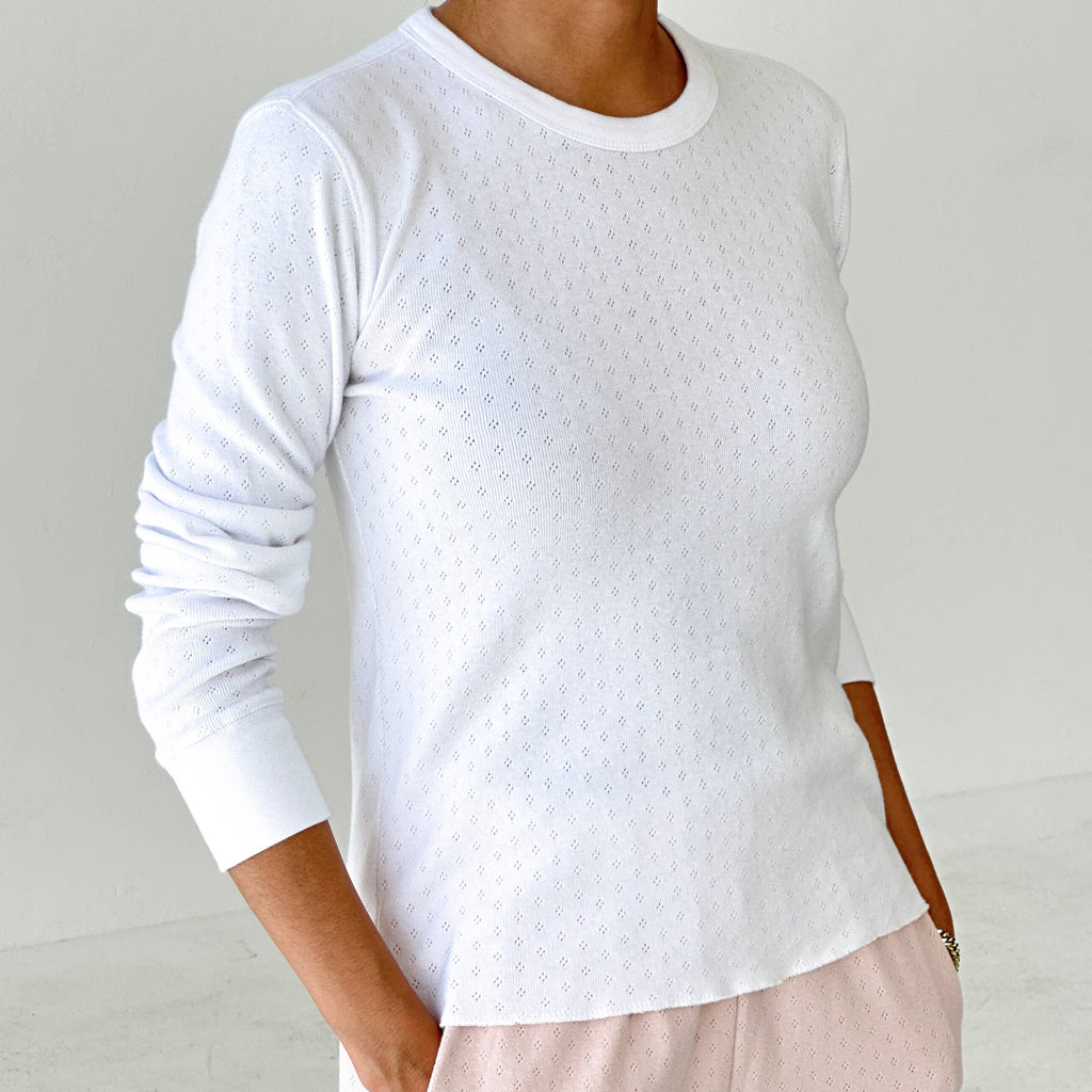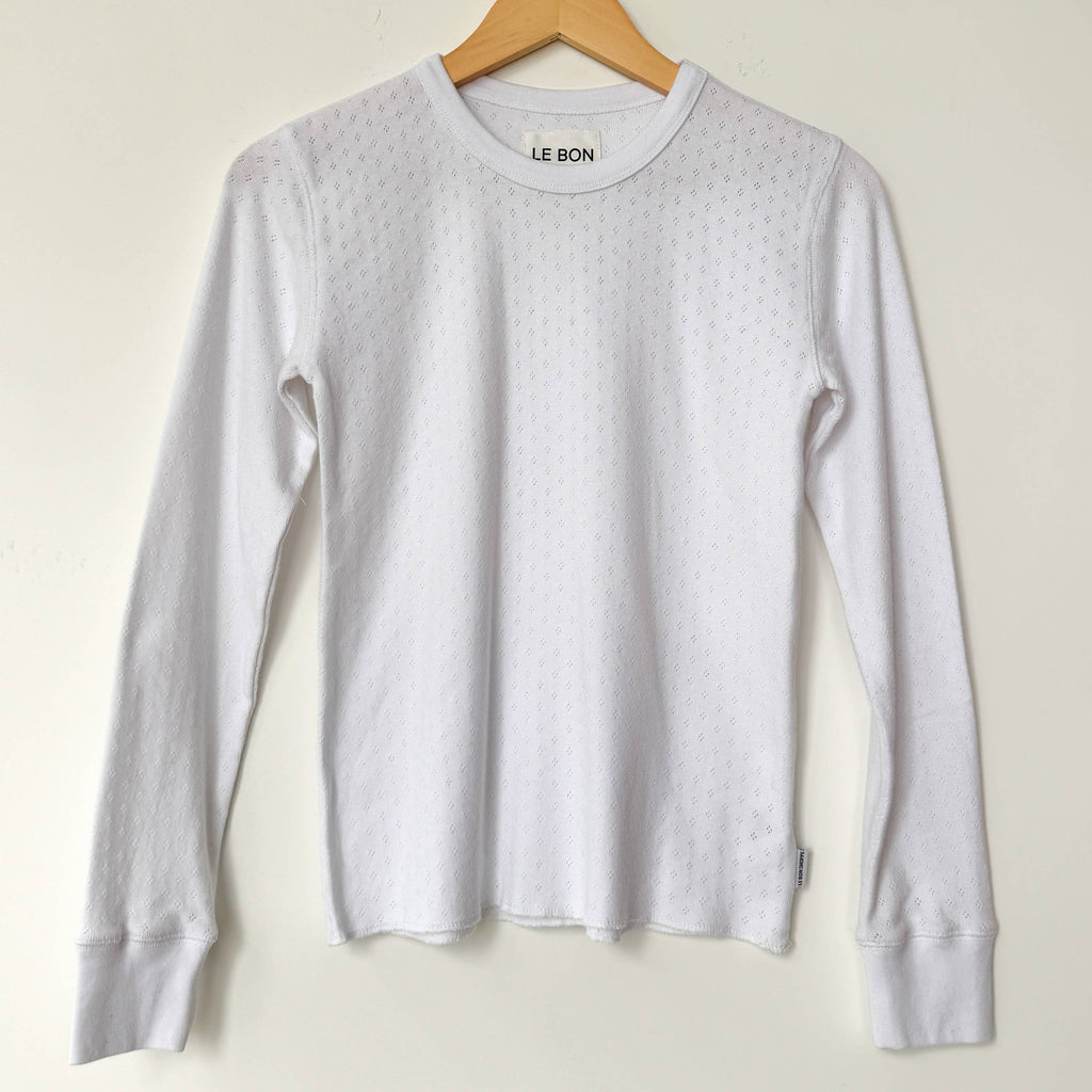 Le Bon ShoppeA core style with a timeless feel. The 100% cotton jersey Pointelle Fundamental Long Sleeve Tee fits close to the body while giving you room to breathe. Designed with a classic crew neckline, slim silhouette, and elevated baby rib cuffs.