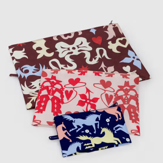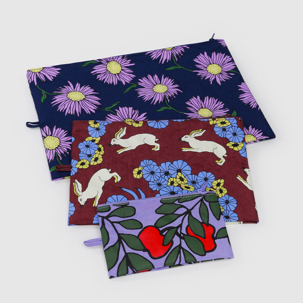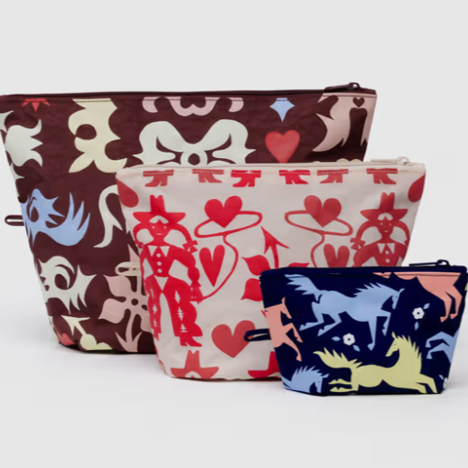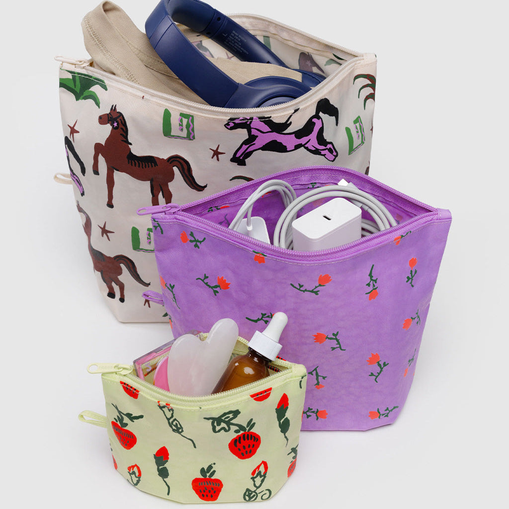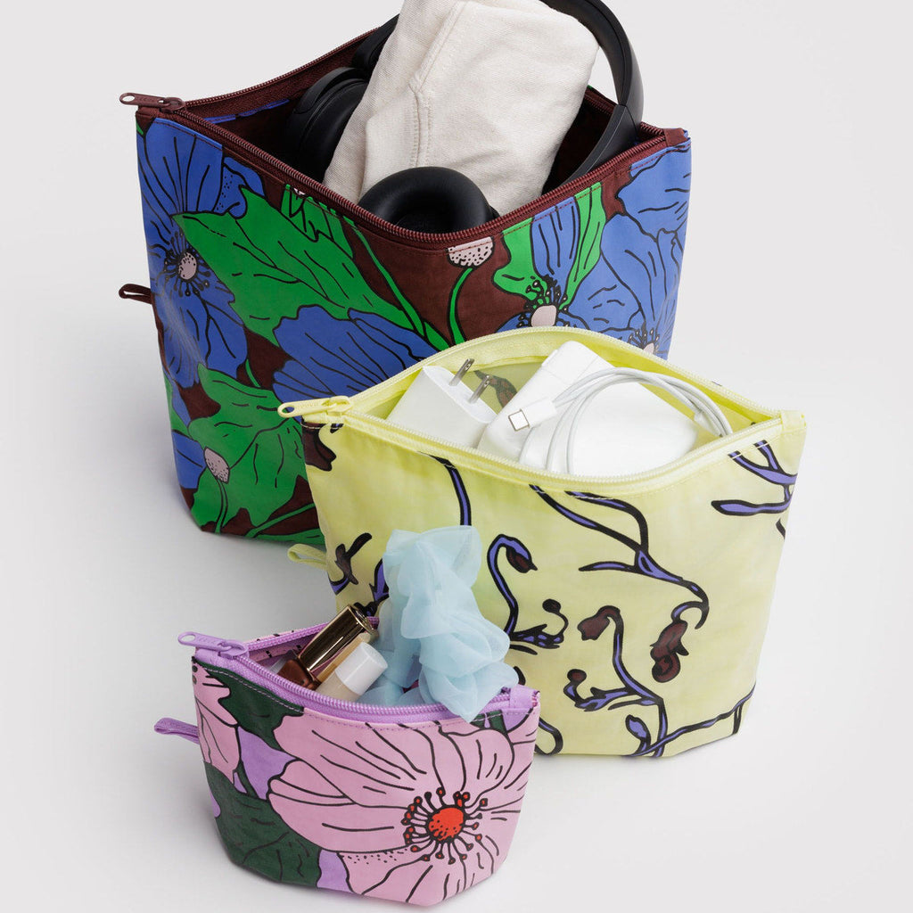 Go Pouch Set makes it easy to keep your bag neatly packed and organized. Whatever you're toting—coins, cords, or an extra pair of shoes—this set of three all purpose pouches keeps it together. They expand to hold your essentials and lay flat when not in use.