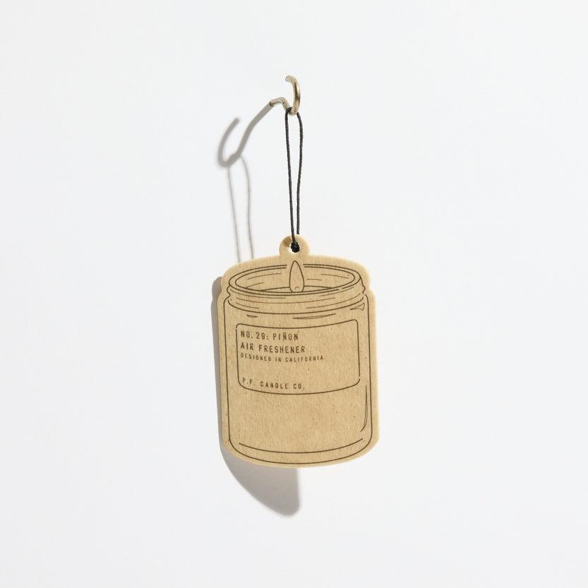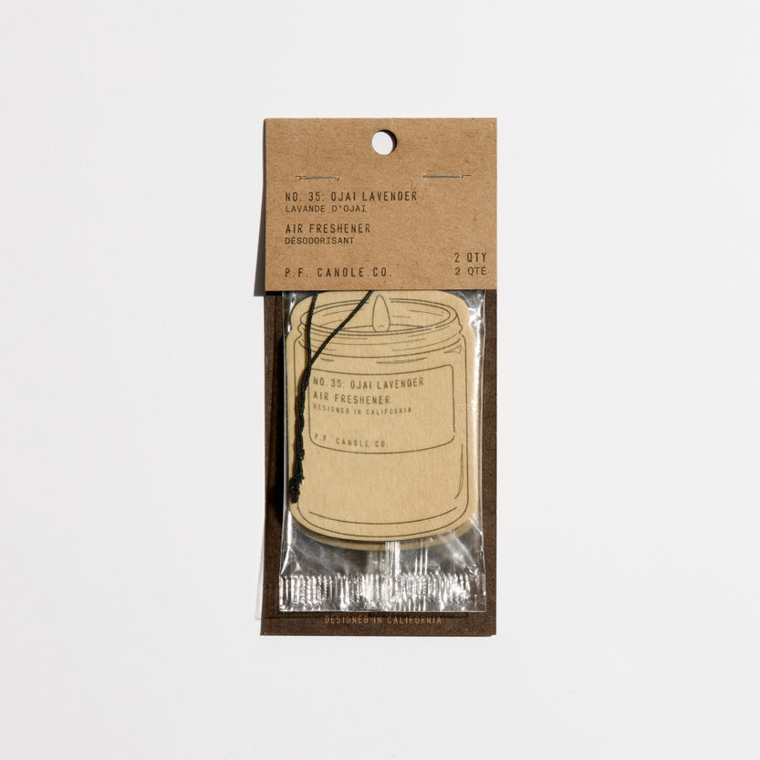 P.F. Candle Co.Introducing Air Fresheners: a flame-free collection designed to scent small spaces, like closets, bathrooms, gym lockers, trash cans, hotel rooms, and anywhere else that needs a little fragrance boost. Air Fresheners are pre-packed in pairs, featuring an iconic P.F. Candle-shape and signature kraft paper look. Formerly known as Car Fragrance, we’ve re-designed this product from tip to tail. Now with a fun, custom shape and hang-tag style packaging to showcase the candle-inspired design, & reduce packaging waste.
