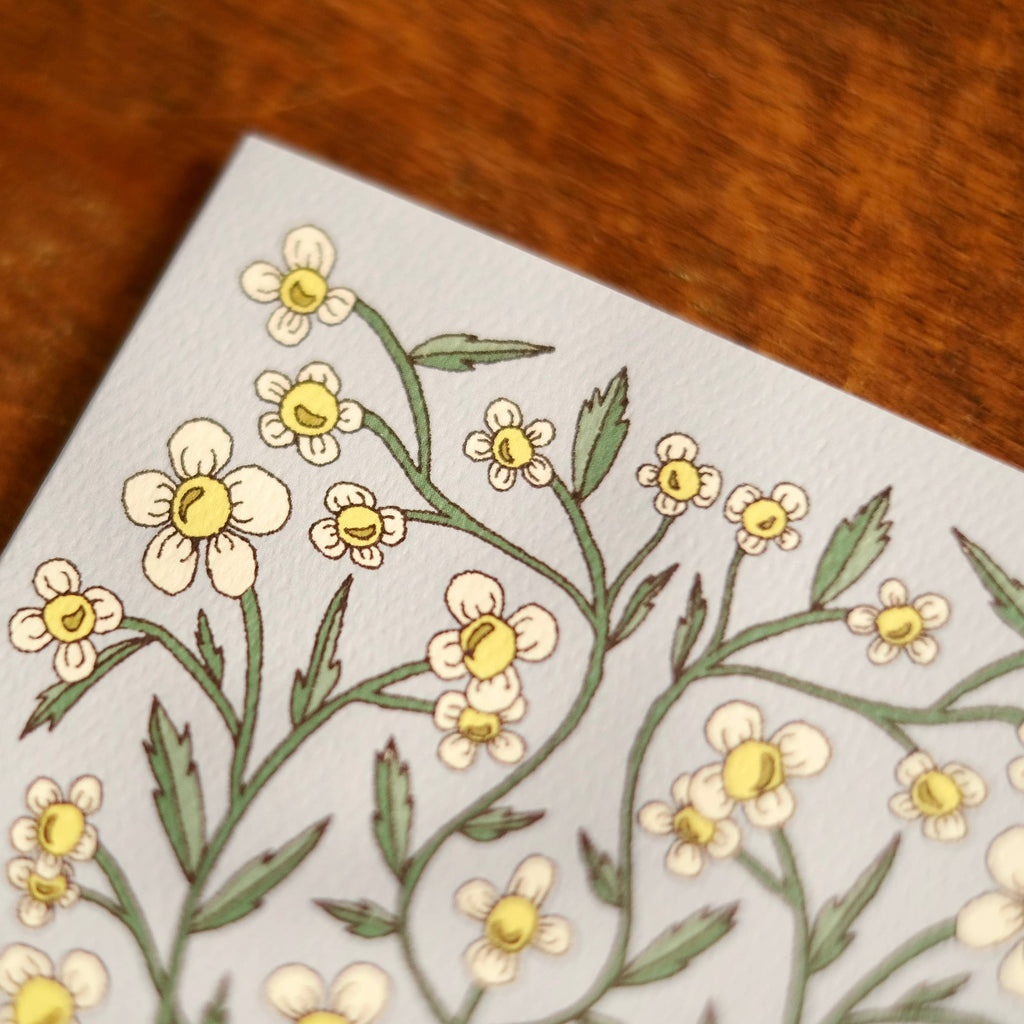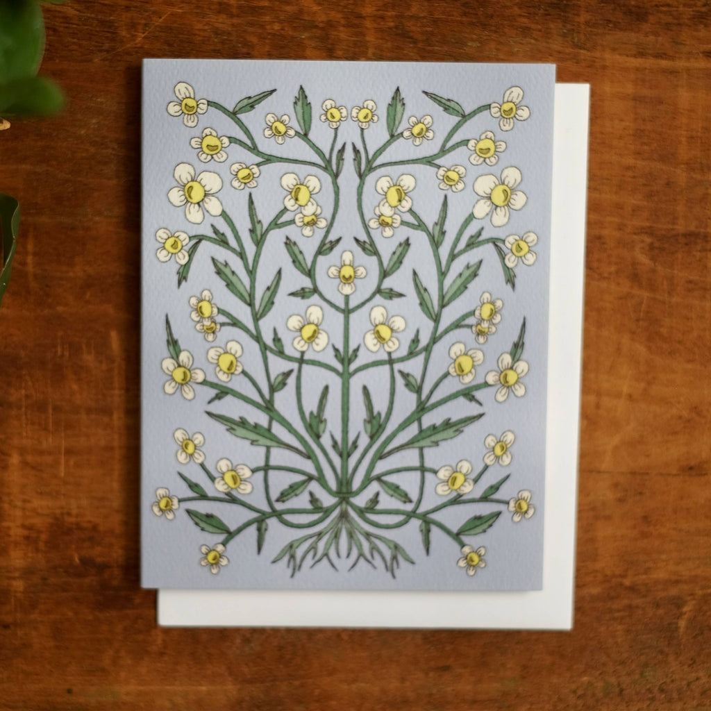 The botanical illustration on this card is an original design by Annalisa Sawtell, professionally-printed on a hand selected natural 100 lb. felt weave card stock for premium quality and an elevated, organic feel. The interior of the Chamomile card is blank, leaving space for your own thoughtful message.