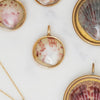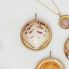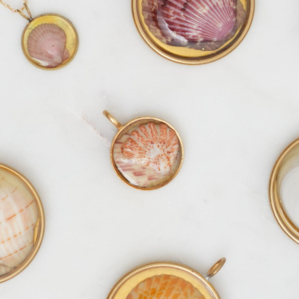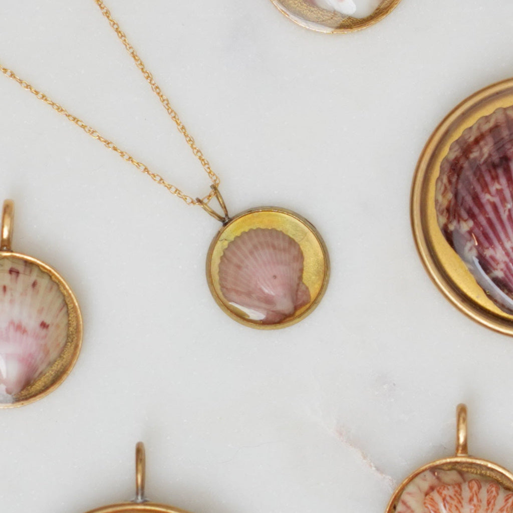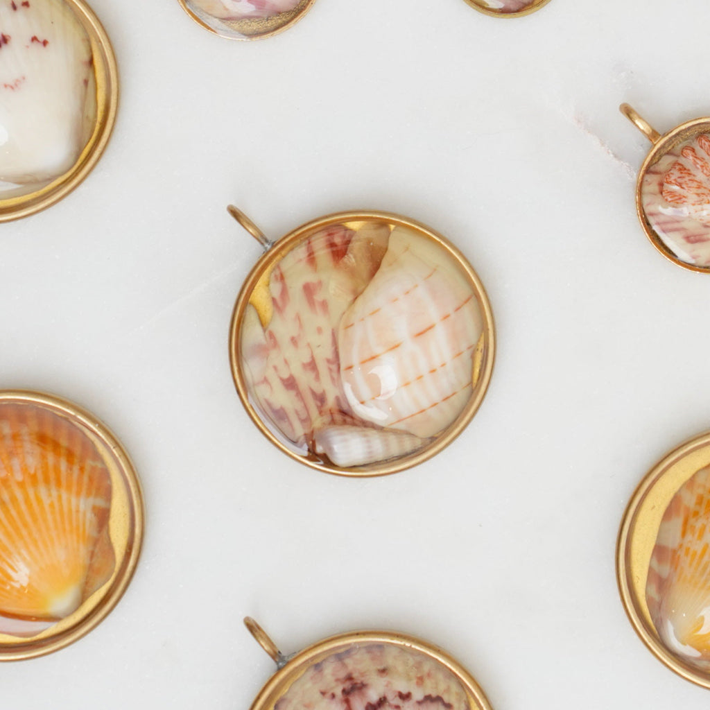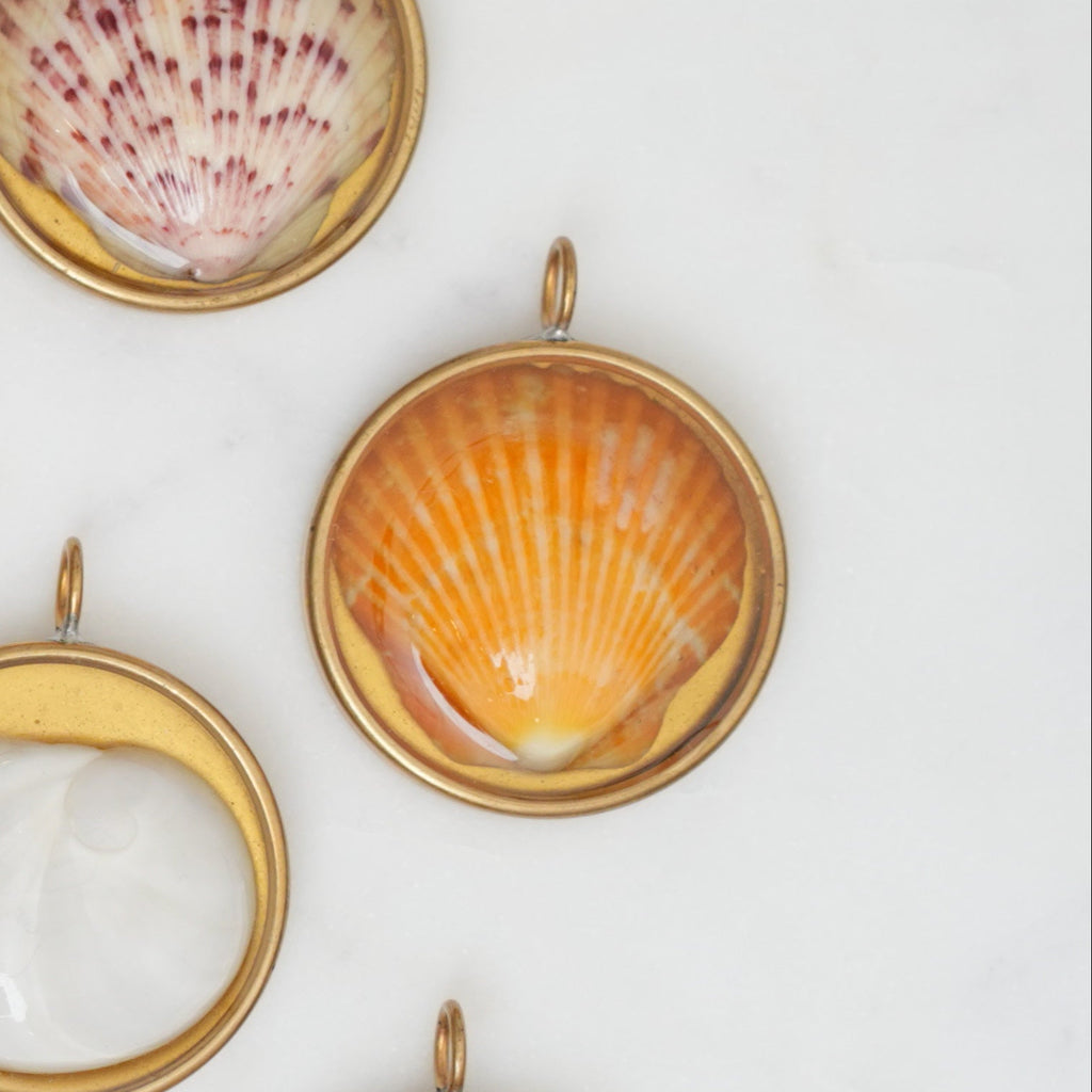 Precious and nostalgic, foraged Sanibel Island shells are set within a brass pendant in jewelers grade resin. These shells are lovely strung on a chain or attached to a charm bracelet.