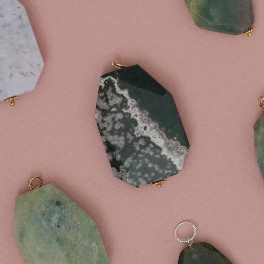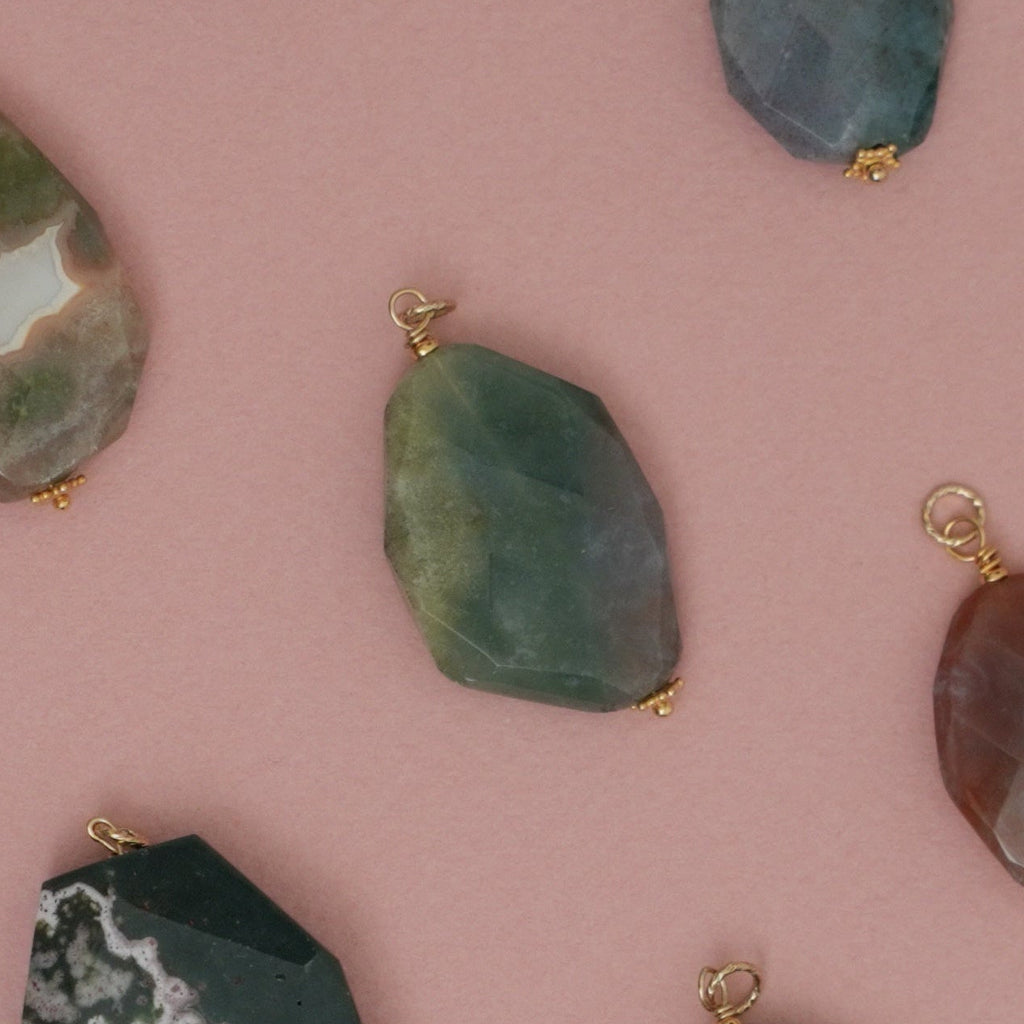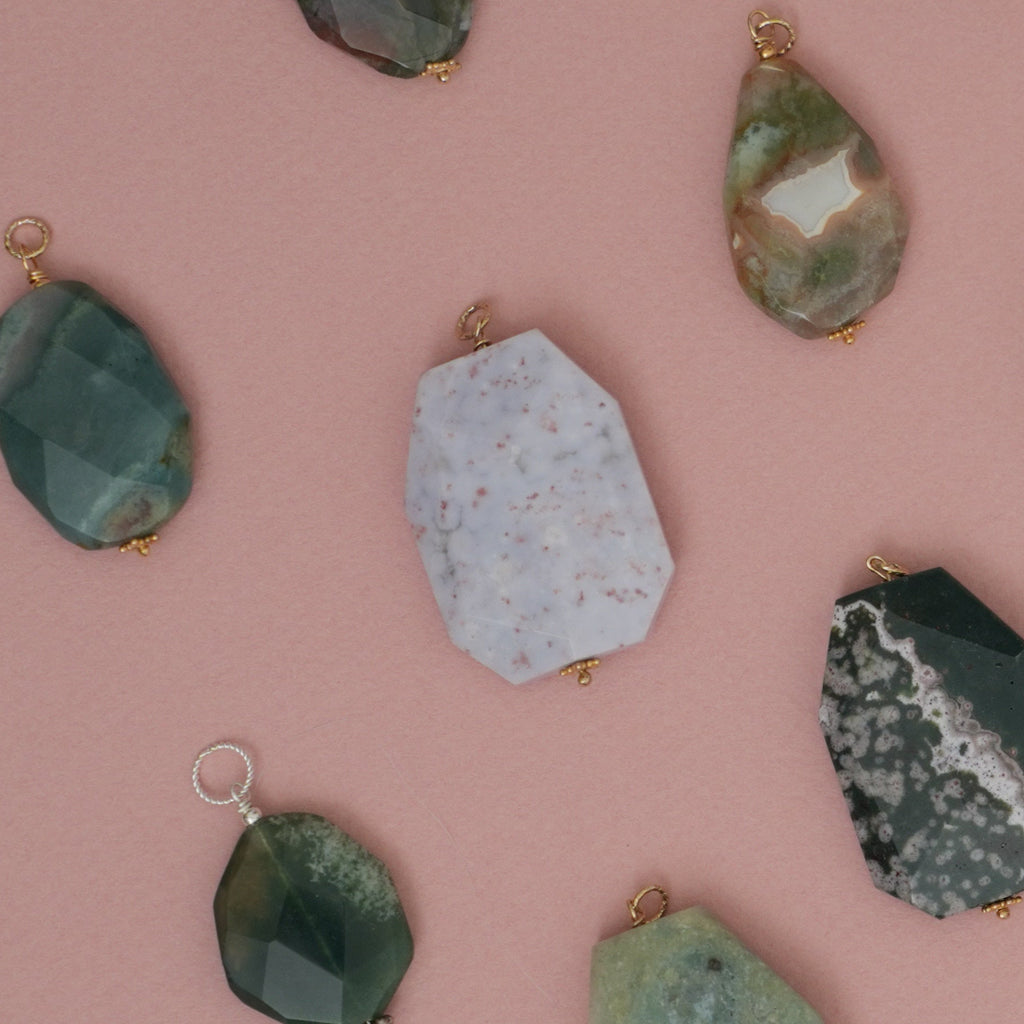 Protextor ParrishThese natural jasper stones on sterling silver and 14 kt gold fill are charms and talismans perfect for layering or wearing solo. Pair them with initials or anything personally meaningful from our charm bar.
