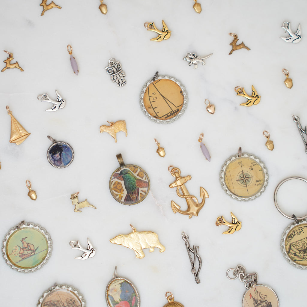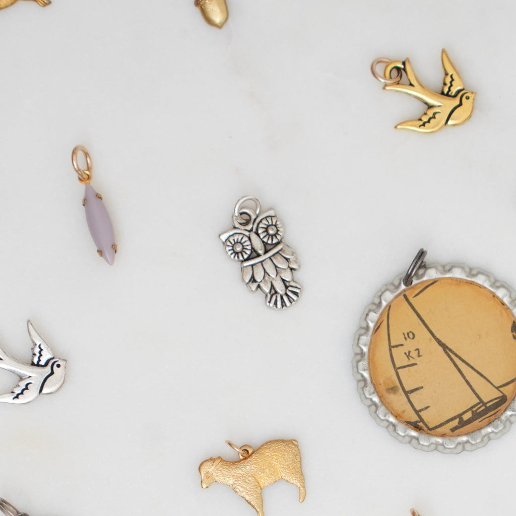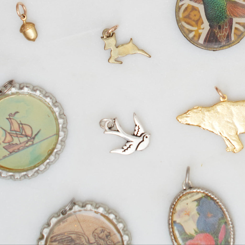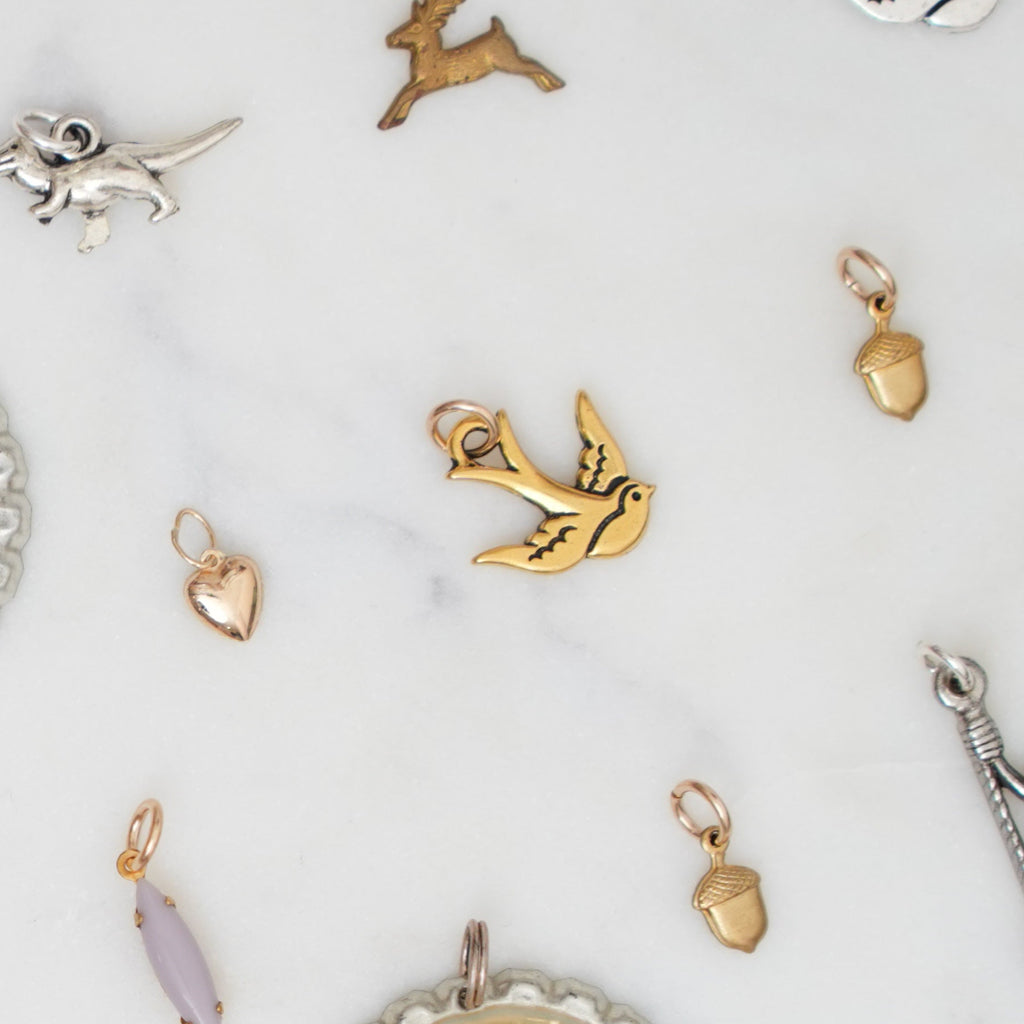 Dainty, but symbolic birds both in flight and perched. Sweet little talismans to add to your charm bracelets and necklaces.