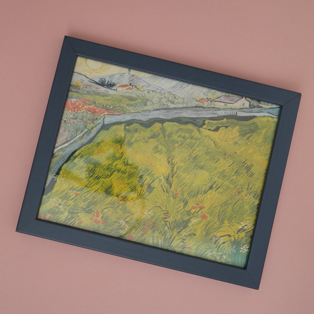 GOLDEN RULE GALLERY VINTAGE ARTA beautiful vintage 1957 offset lithograph of the oil painting "The Enclosed Field“ (1889) by Vincent Van Gogh. Printed on one side only and hand tipped-in on a sheet of heavy paper.