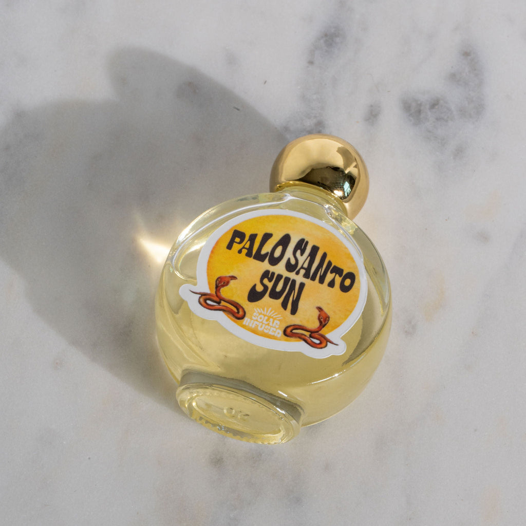 Ethically harvested, ceremonial grade, Palo Santo highlighted in a base of organic golden jojoba. Solar (Sun) Charged energetic properties: energizing, clarity, solar plexus activating.