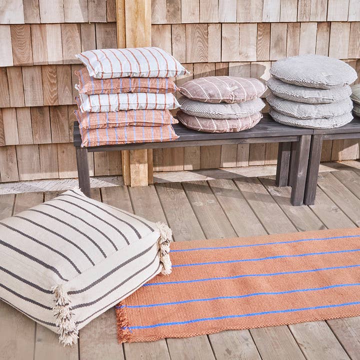 OYOY LIVING DESIGNThe Kyoto Outdoor Cushions in recycled polyester are perfect on the terrace or balcony. The round cushion in choko has a simple design with stripes, making these a cozy addition to any bench or chair.