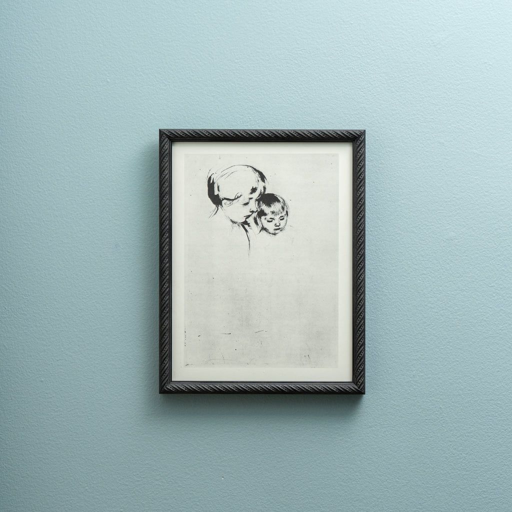 Vintage 1974 black and white art plate of the 1891 drypoint Mother and Child by Mary CassattAffixed to chipboard backing for maximum ease in styling, propping, or framing.