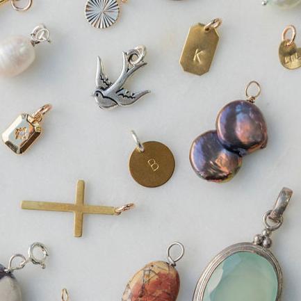 EKATEThese single initial charms are wafer thin and easy to layer and stack with all your other meaningful charms and birthstones on a necklace or bracelet.
