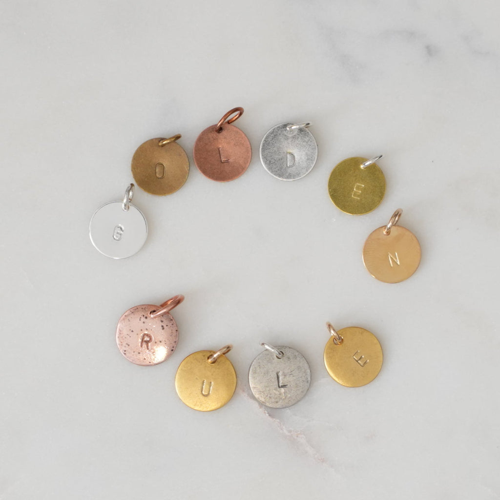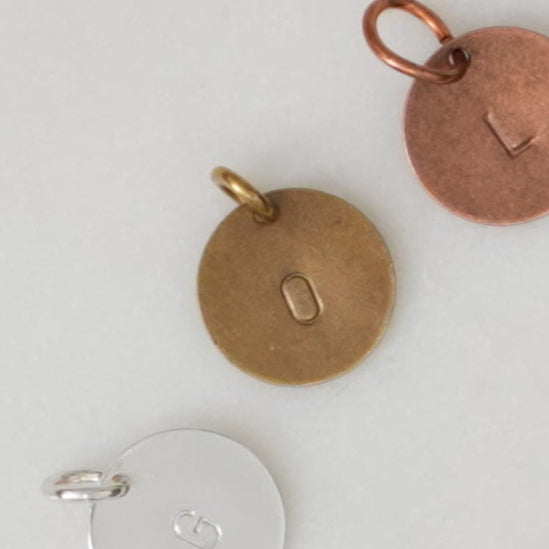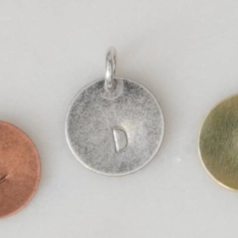 Select your custom initial and it will be hand stamped in your choice of antiqued brass, antiqued copper, or antiqued silver.