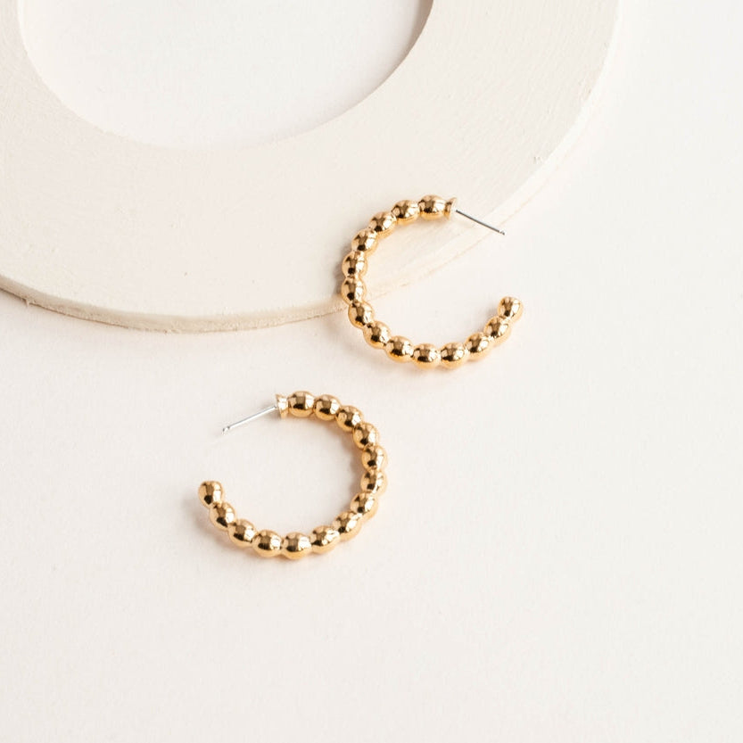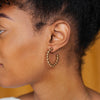 Michelle Starbuck DesignsVintage brass thick patterned wire, shaped into hoops. Sterling silver posts and backs. Hoops are 1 3/8".