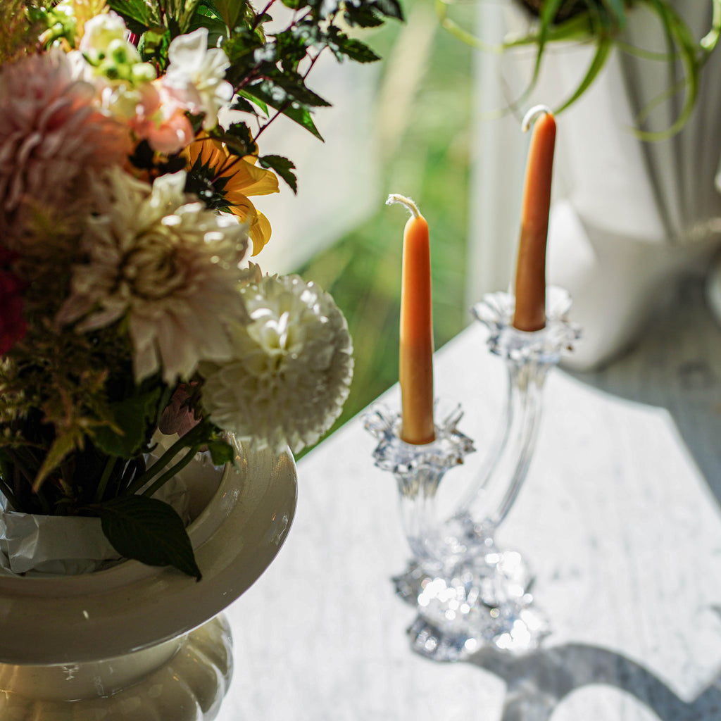 Delicate fragrance and long burning time. When burned, beeswax candles emit negative ions that purify the air making it the cleanest burning wax available. Plus it naturally smells like honey and wildflowers!