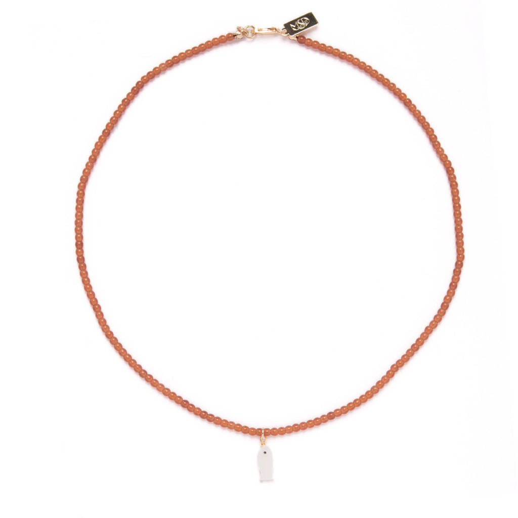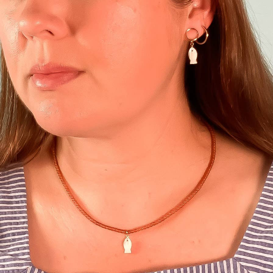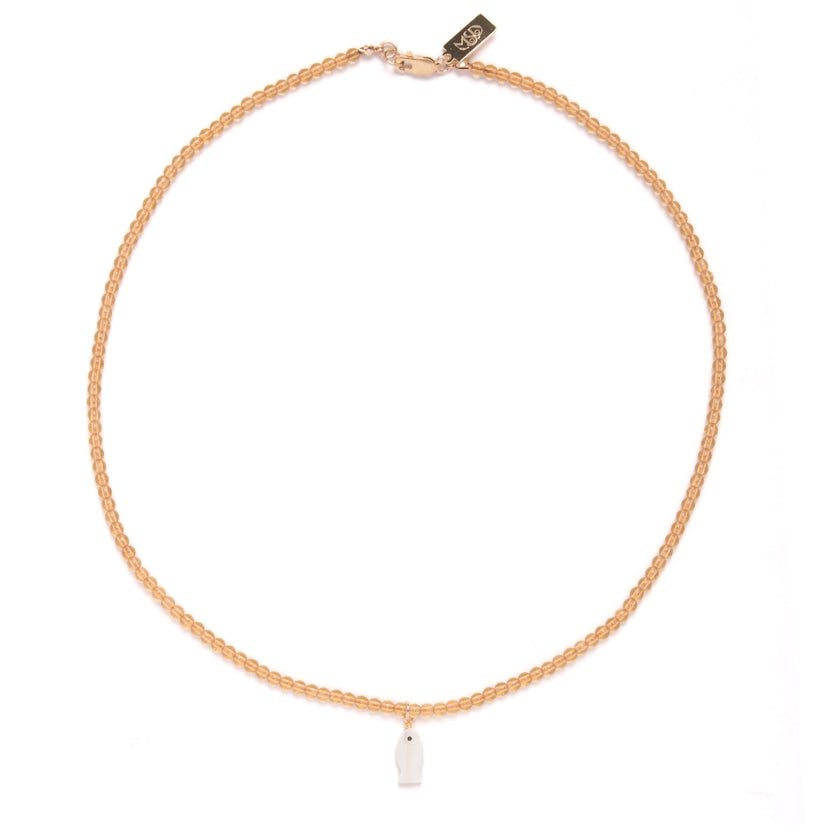 Michelle Starbuck DesignsMother of pearl fish charm strung on silk with glass beads, with 14kt gold fill.