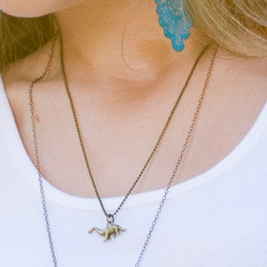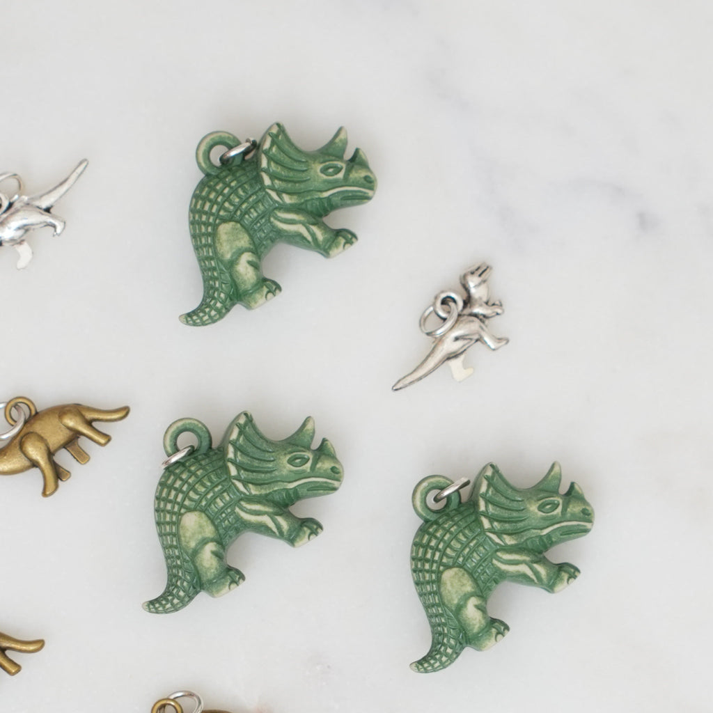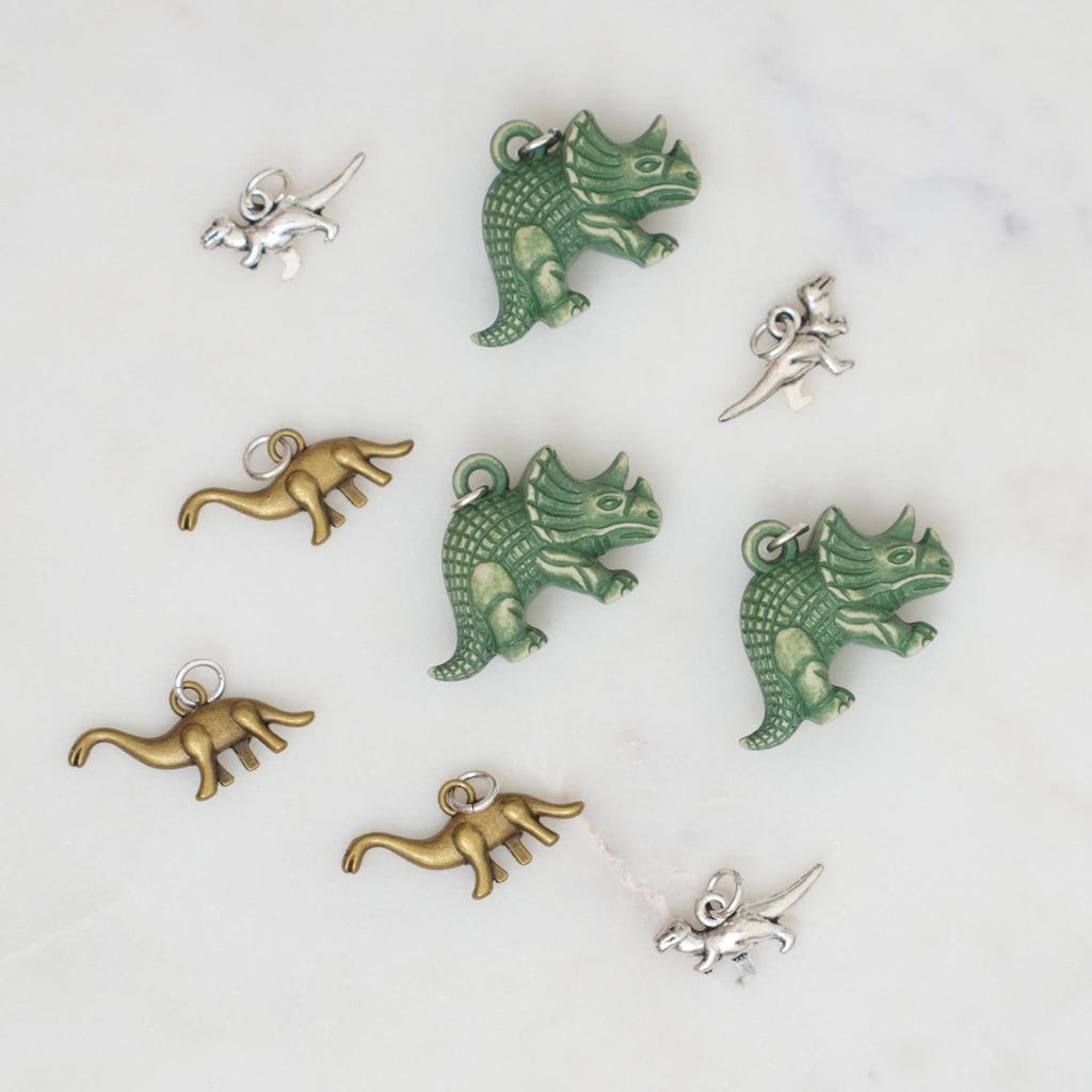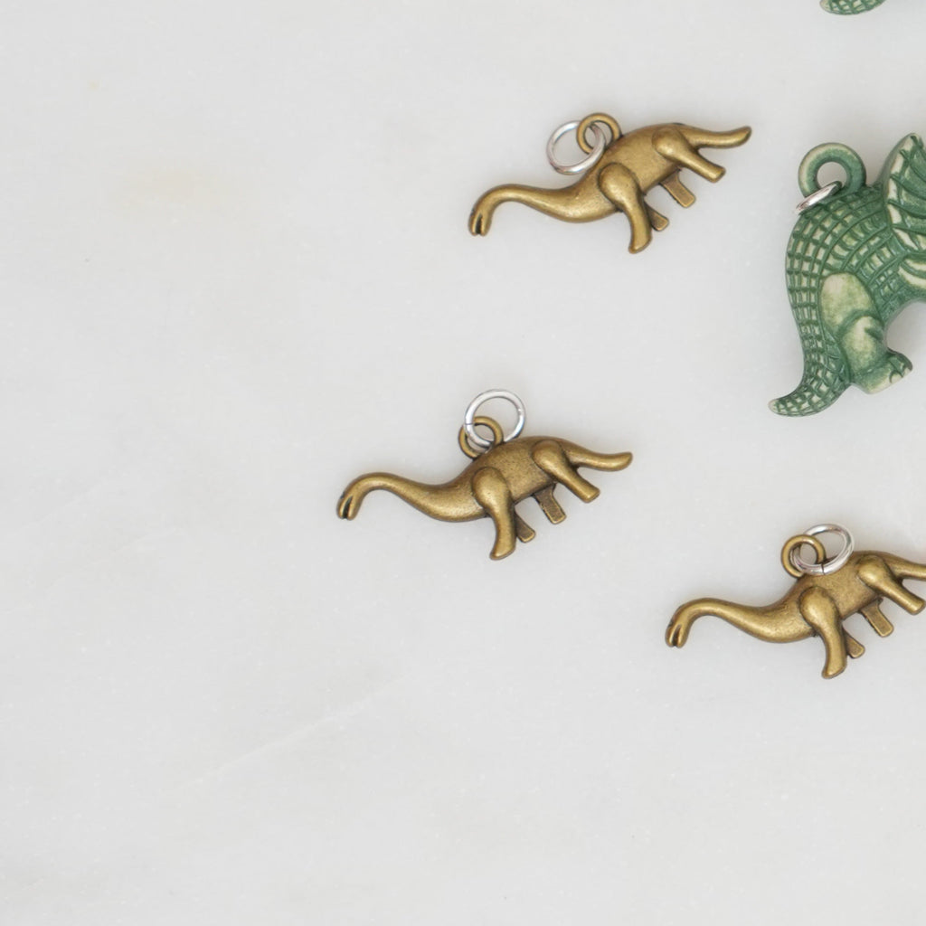 EKATEDid every kid in the 1980s have a dinosaur obsession? I feel like learning our dinosaurs was a big part of growing up that I can't let go. You too? Well, now you can keep that little piece of nostalgia close to you at all times. String a brontosaurus, triceratops, or scary T-Rex right onto that charm necklace and reminisce about your favorite extinct species.