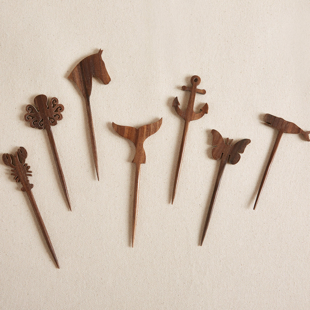 Siren SongHand carved cocktail picks, perfect for any drink or hors d'oeuvre. Rendered in wood, each has been hand carved by a small artisanal workshop. Made from a sustainable wood source. Each pick is made from cedar wood.