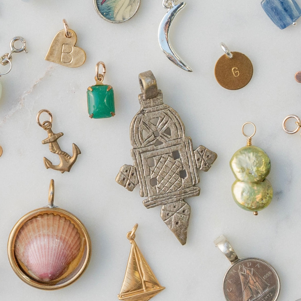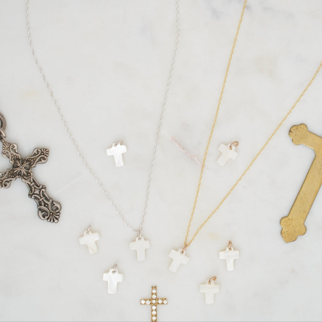 Assorted vintage and antique cross charms for necklaces or charm bracelets.