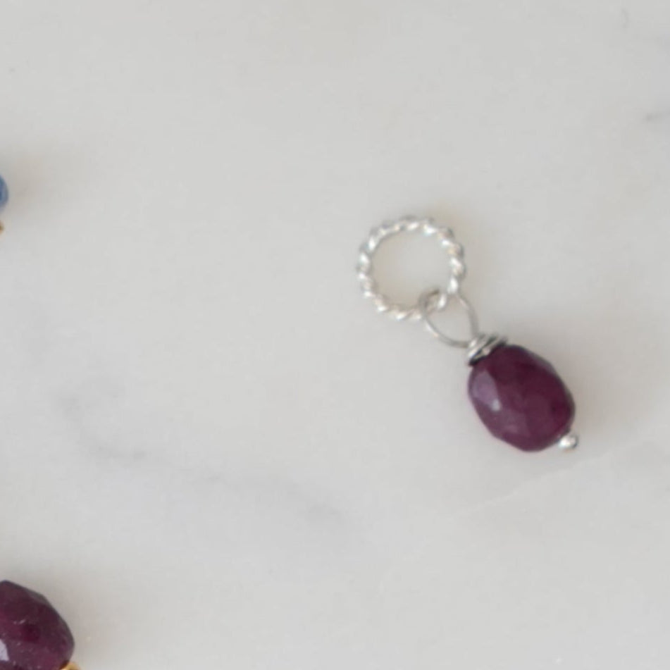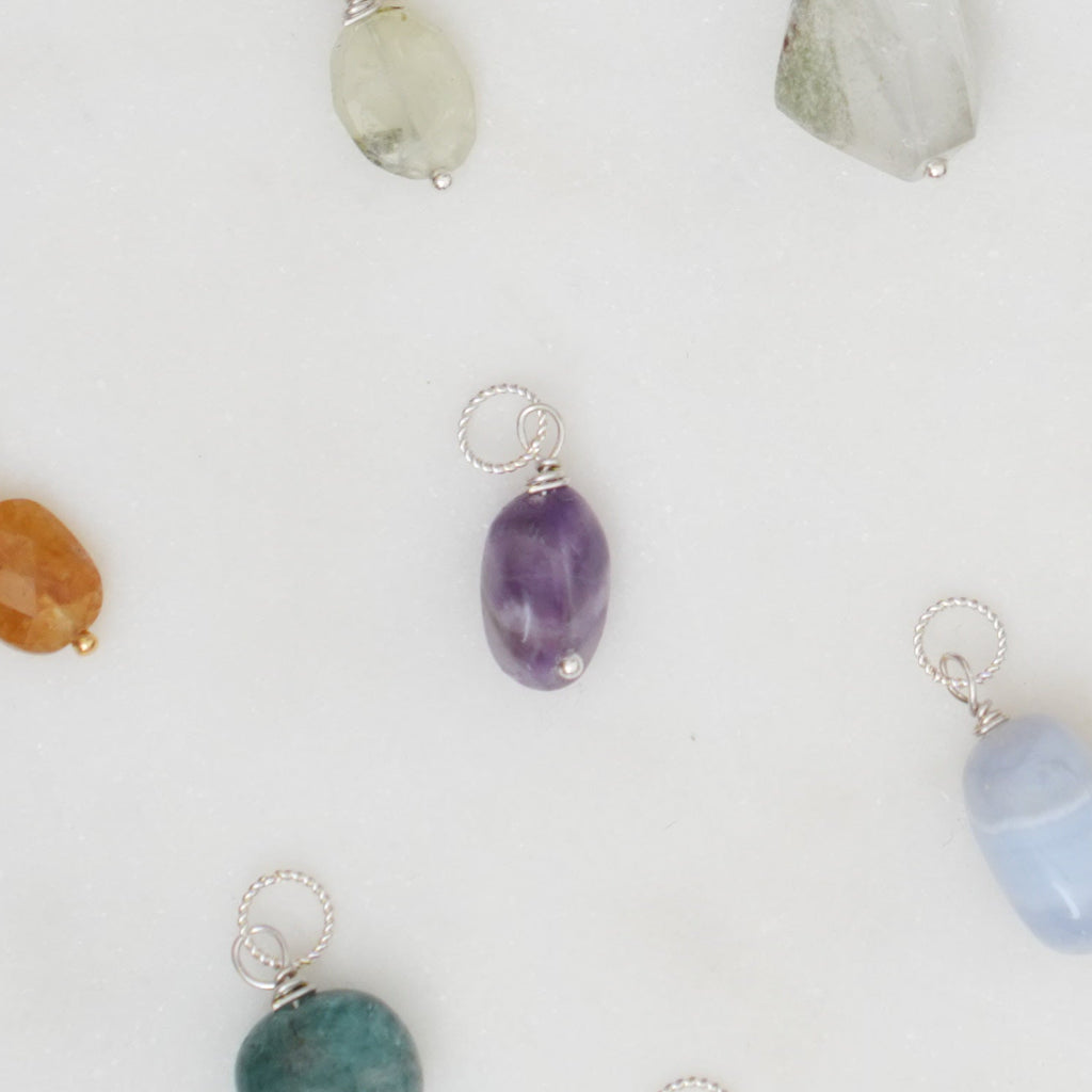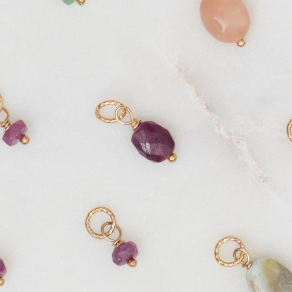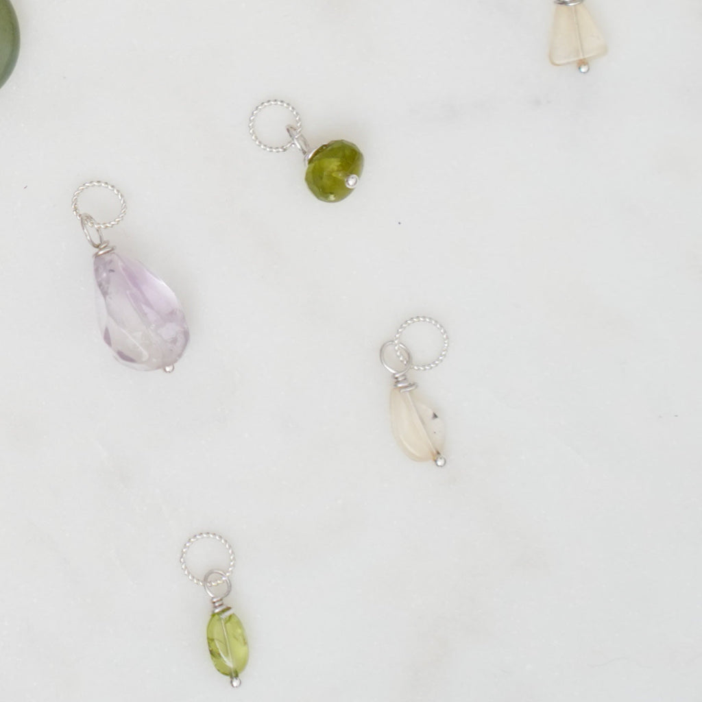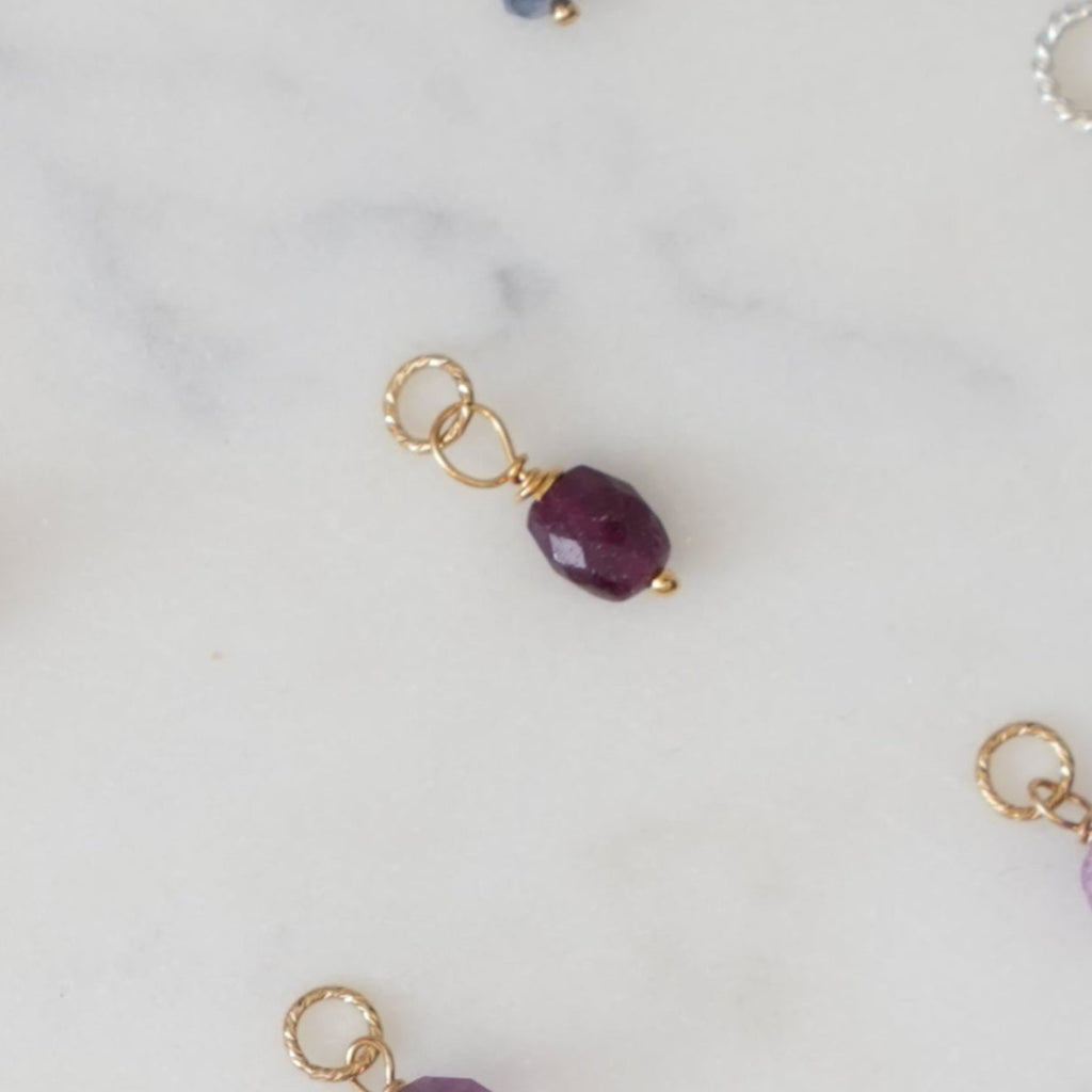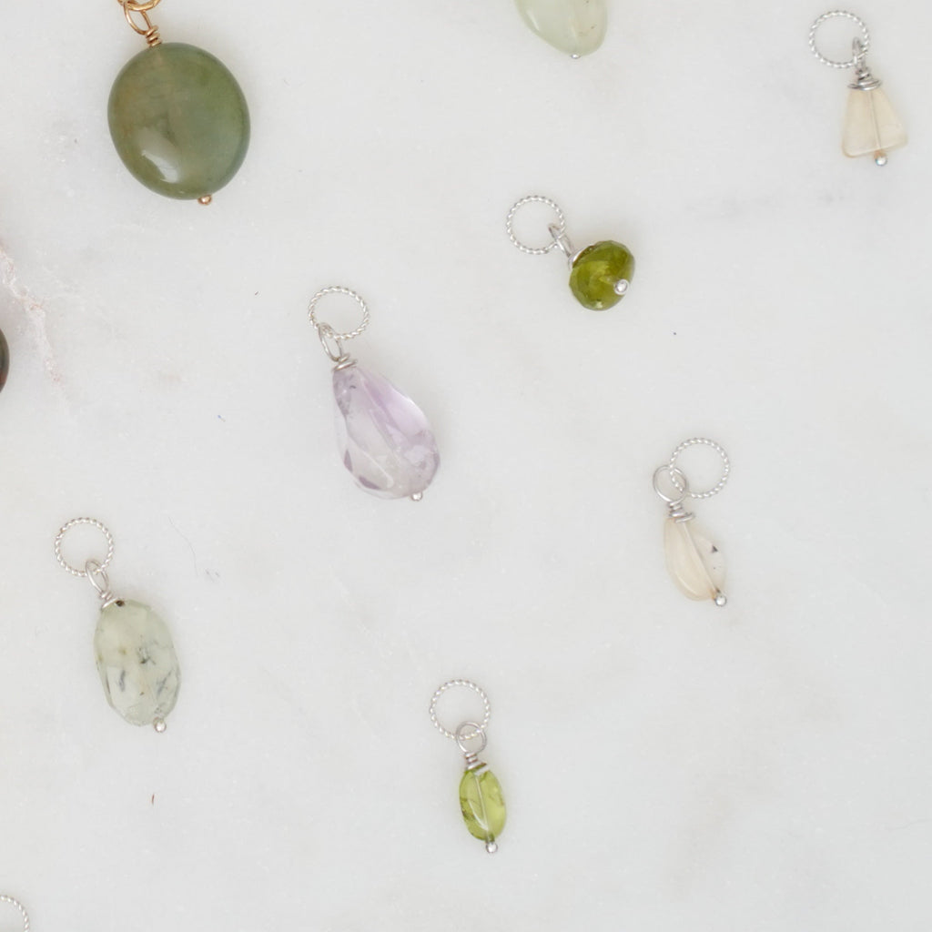 Stunning birthstone gems on sterling silver and 14kt gold fill with loops or rings large enough to string onto most chains, attach to front clasp necklaces, or add to charm bracelets and necklaces.