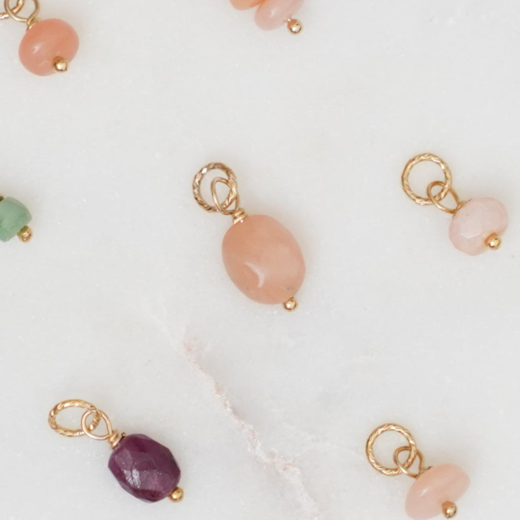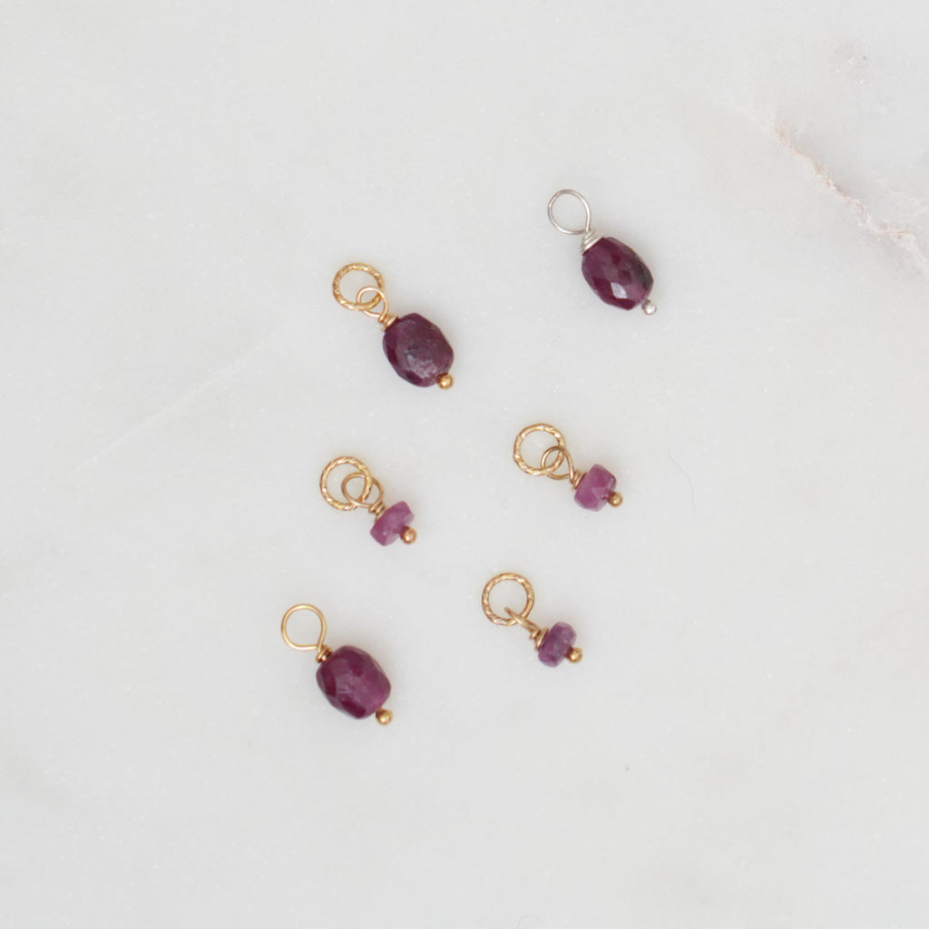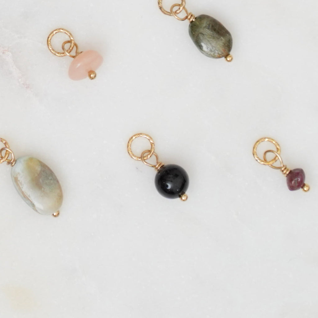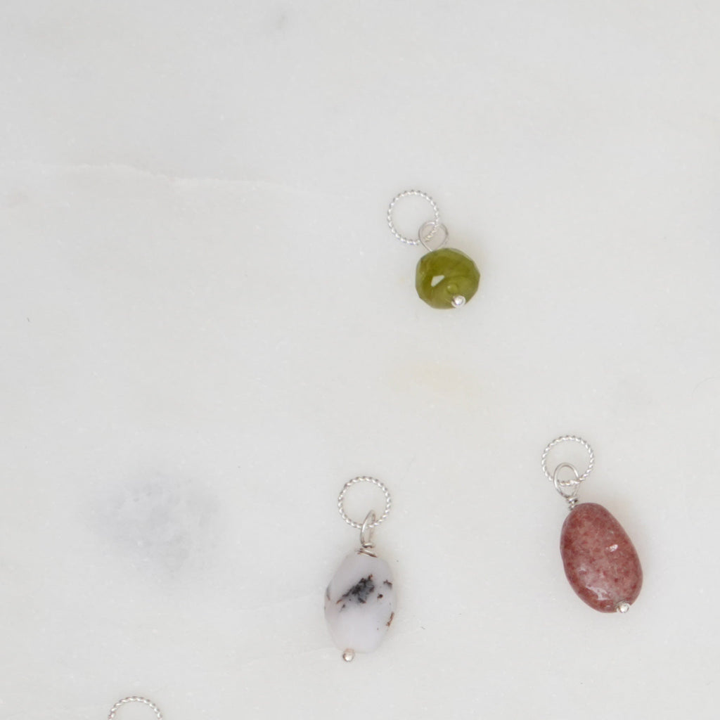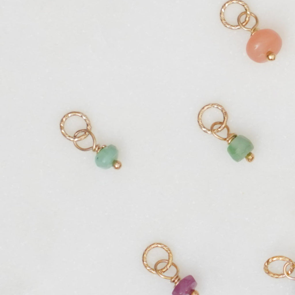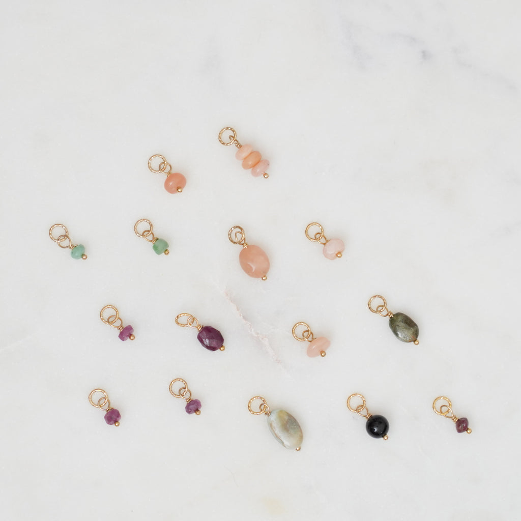 Stunning birthstone gems on sterling silver and 14kt gold fill with loops or rings large enough to string onto most chains, attach to front clasp necklaces, or add to charm bracelets and necklaces.