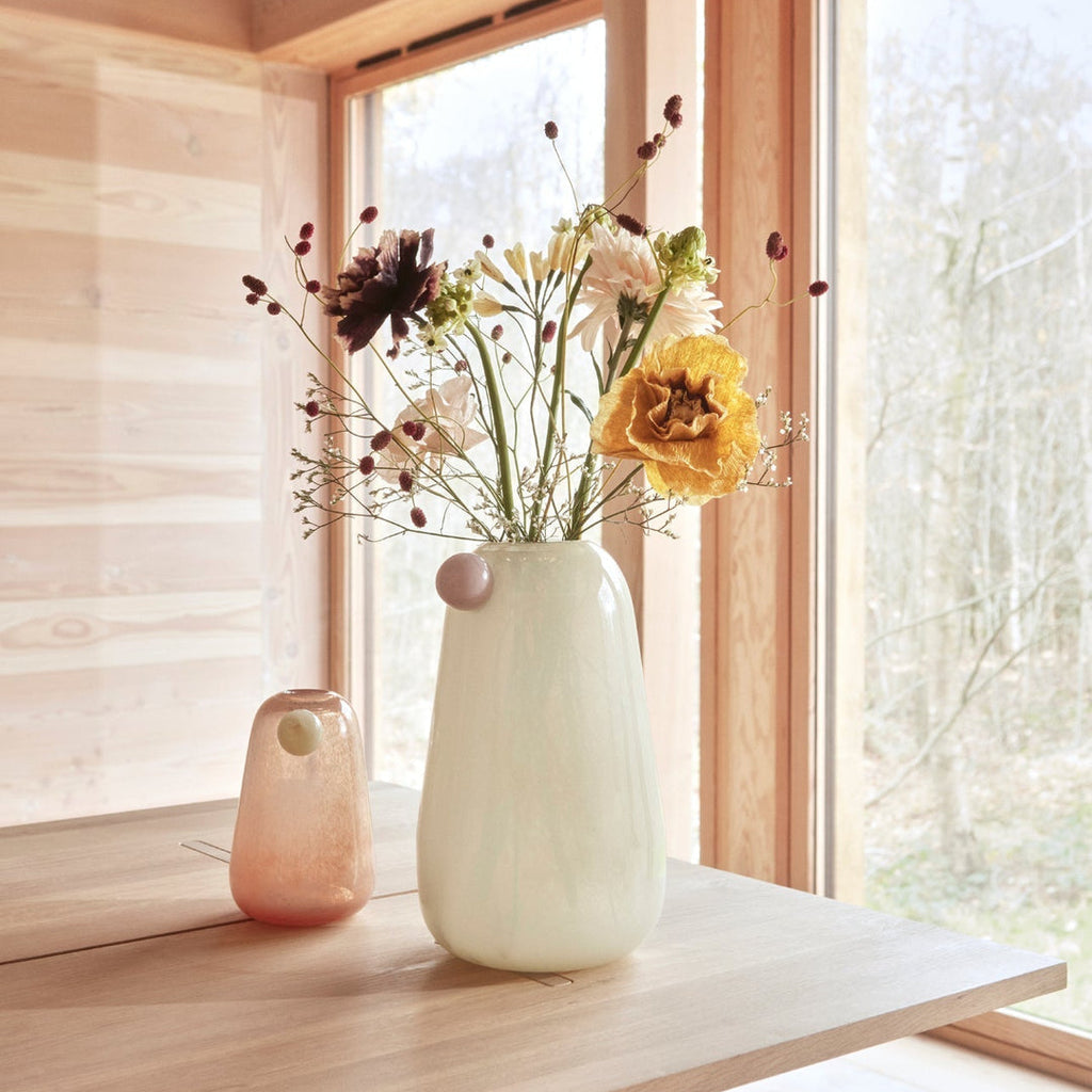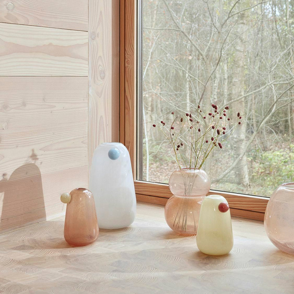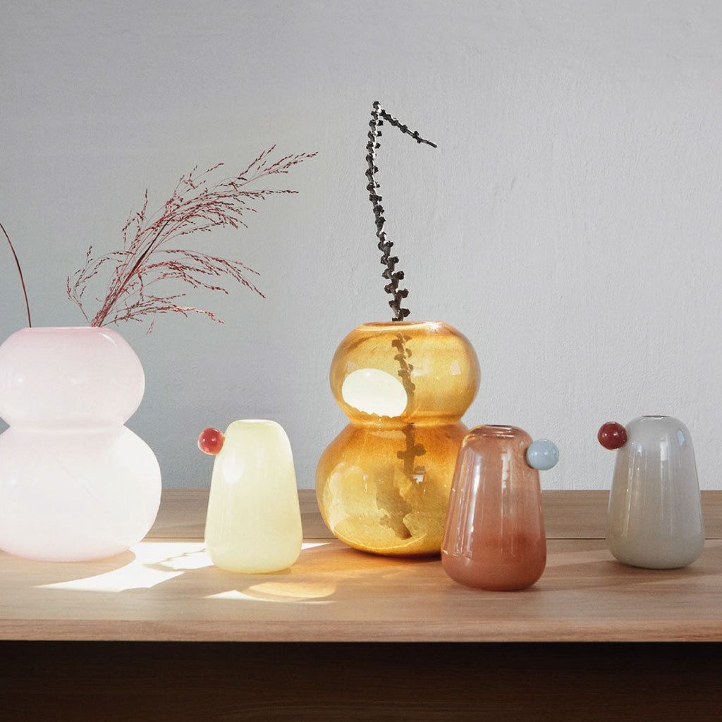 OYOY LIVING DESIGNThe mouth-blown Inka Vase comes in a variety of colored glass, with modern round handles.