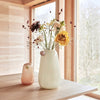 The mouth-blown Inka Vase comes in a variety of colored glass, with modern round handles.