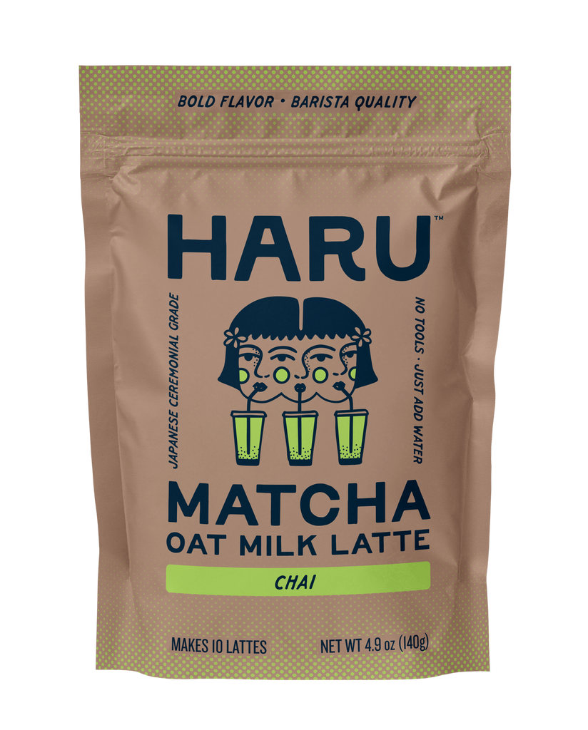 Meet Haru, the first barista-quality matcha oat milk latte mix that requires no tools — just add water. Crafted with ceremonial-grade Japanese matcha, creamy oat milk, and chai spice flavor, Haru’s Chai brings a cozy, aromatic twist to the calm, focused energy of traditional matcha. No whisking, no frothers — just a smooth, spiced matcha latte that’s ready in seconds.