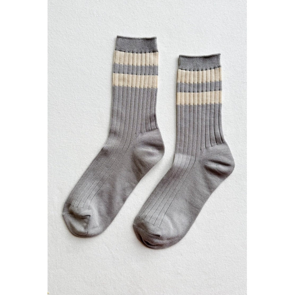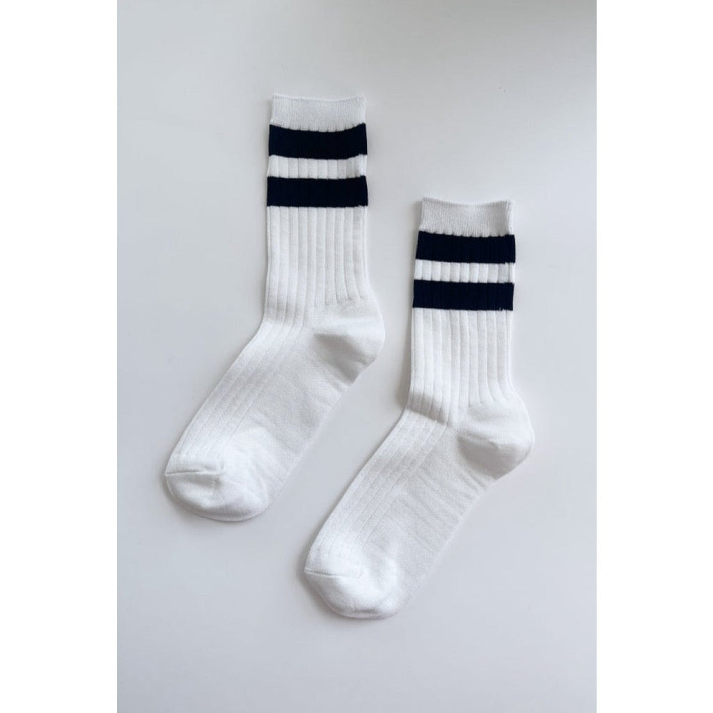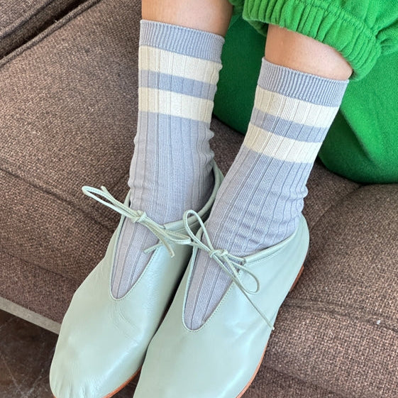 Sweet little dressy ribbed ankle socks with a sassy vintage varsity stripe. Find these socks without the stripe here.