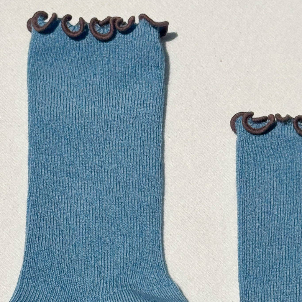 Le Bon ShoppeNoble x Le Bon Shoppe — A sock born from their shared love of slow fashion, good design, and color combos that go with literally everything. The Ruffled Modal Socks feature a baby rib texture with a playful lettuce-edge ruffle at the top. Their versatile crew length makes them perfect worn long or scrunched down.