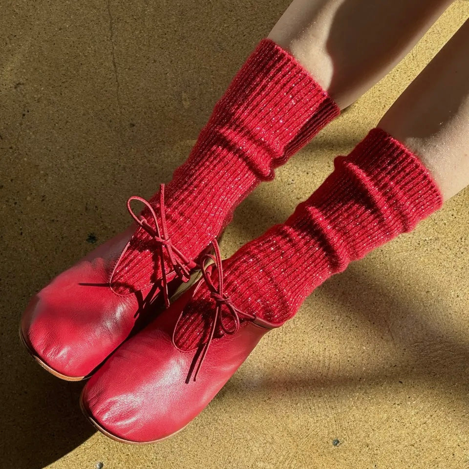 Nothing says twinkle toes like the Winter Sparkle Socks. Crafted from a cozy wool-Lurex blend, this sparkly version of the Snow Socks is sure to get you through the winter chill in style. The extra length can be worn up for an added layer of warmth or scrunched or folded with your favorite clogs or Mary Janes.