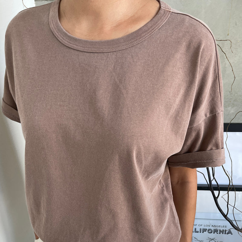 Super soft, dropped shoulder tee with a slightly boxy fit. The dying and washing process gives each garment unique character. Please allow for slight color and fit variation for each garment.
