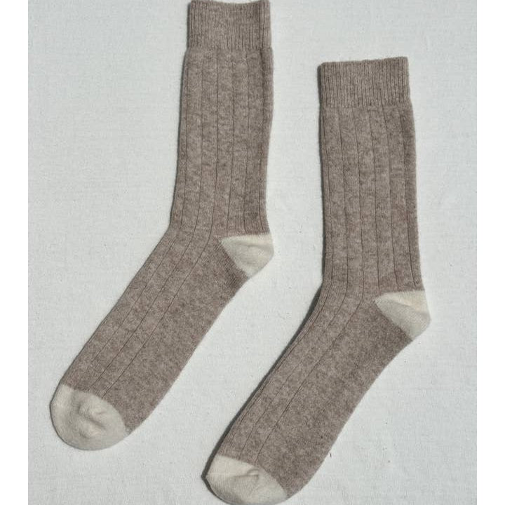 Le Bon ShoppeA vintage-esque Cashmere blended socks with a wide ribbing detail and tonal contrasting heel and toe. This elegant and classic sock will be your go to gal during the colder season.