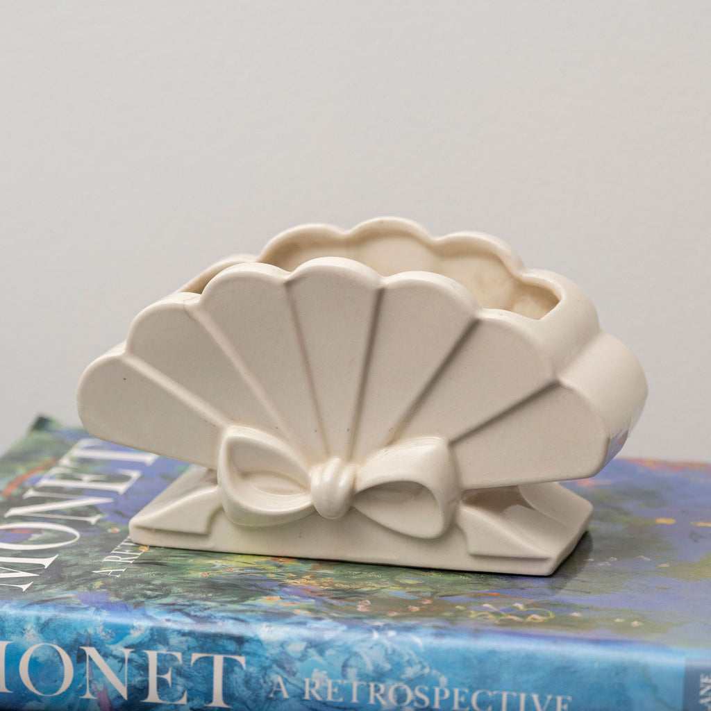 Vintage 1950s Ceramic Cream Scalloped Bow Planter