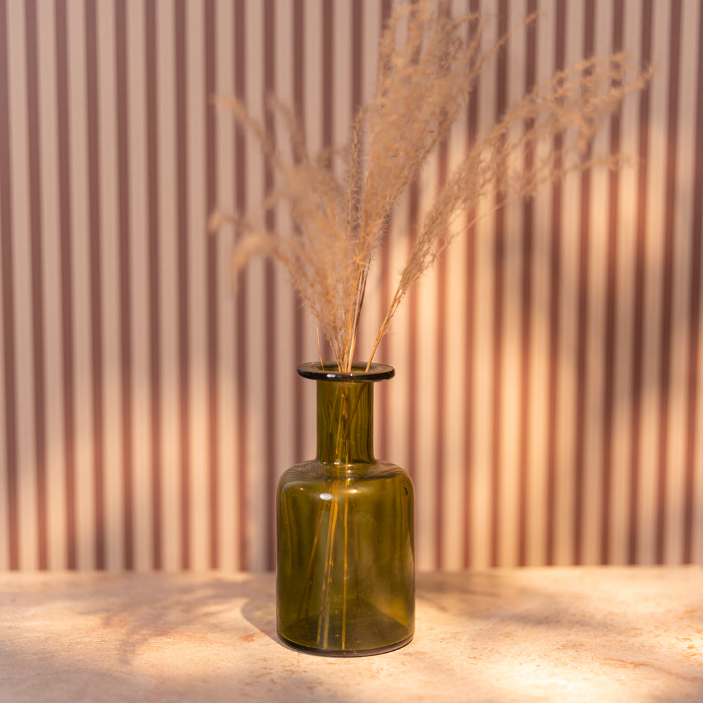 6" Green Glass Bud Vase with Bubbled Petal Base - Sold out