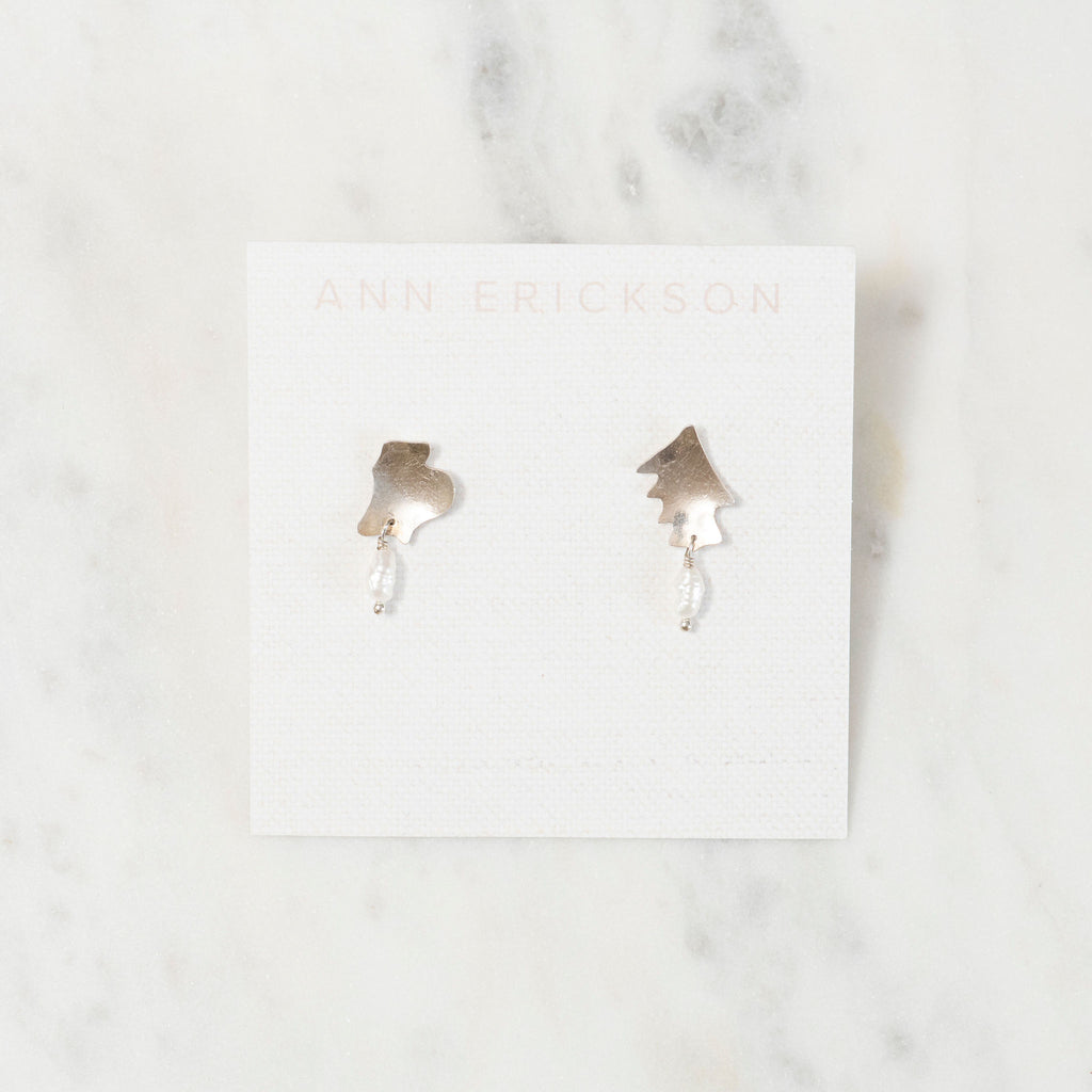 Ann EricksonHand fabricated and textured sterling silver stud earrings with pearl drops. Made with sterling silver posts and backs.
