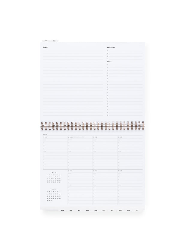 AppointedThe 2026 Weekly Task Planner packs a productivity punch with weekly spreads, a Sunday start, and an hourly break-down of each day. The opposite page (or top page if laid open) features plenty of room for notes, tasks, and priorities so all your to-dos can live in one place, plus goals and monthly pages for big-picture planning. Better yet, wire-o top-binding makes this planner the ideal choice for left-handers. Appointed has compiled your favorite details from their best-selling formats with innovative elements for planning made simple.
