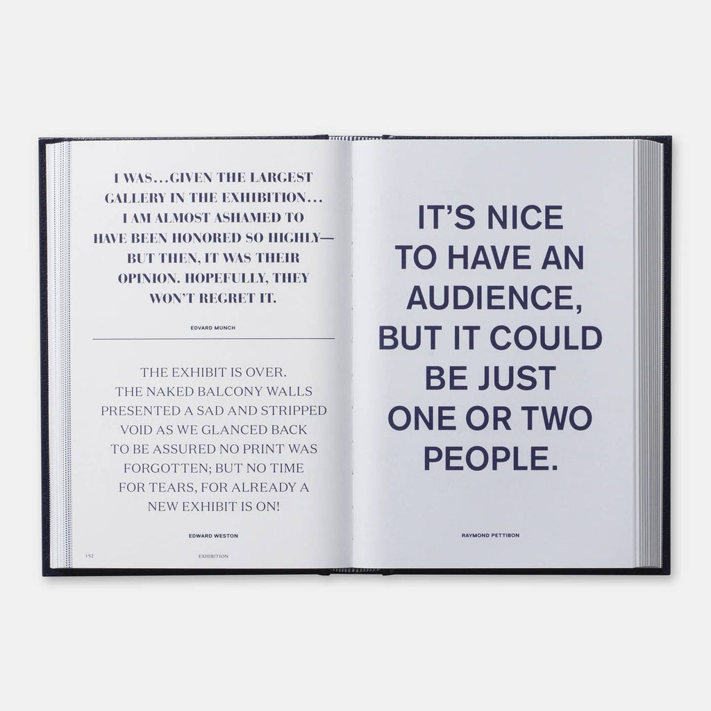 PhaidonAdvice, strong opinions, and personal revelations by the world's greatest artists - exclusively researched for this book. Featuring the most inspirational and insightful collection of quotes by artists through the ages and across the globe, this exquisite keepsake is the ideal book for artists, collectors, and armchair enthusiasts. As painters, sculptors, photographers, and other visual artists see and experience the world through a unique lens, Art Is the Highest Form of Hope & Other Quotes by Artists shows that their life lessons, private revelations, and frank, often irreverent, opinions can guide us all. This unique and carefully curated book, packed with totally original research, is a go-to resource for revealing thoughts and personal advice on subjects as diverse as beauty, colour, light, sex, chance, discipline, money troubles, originality, fear of failure, danger of success, the creative process, and more – all messages transmitted from the artistic trenches.