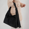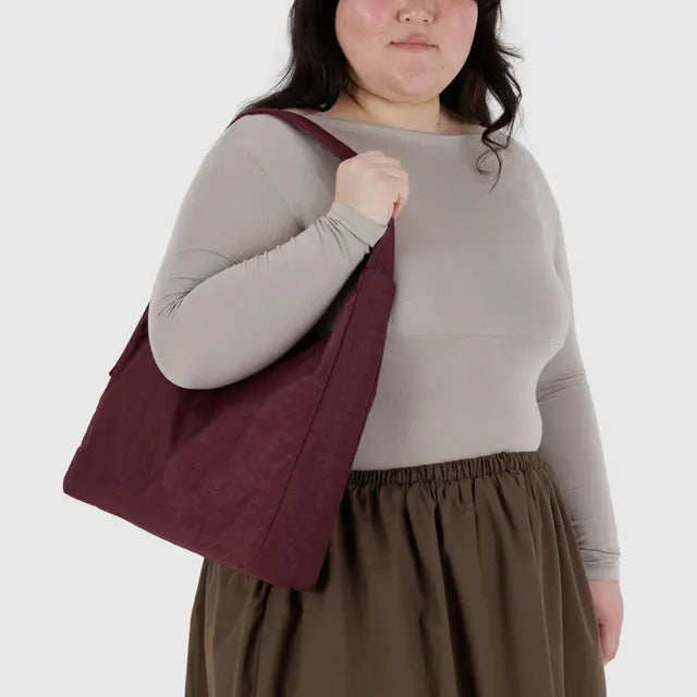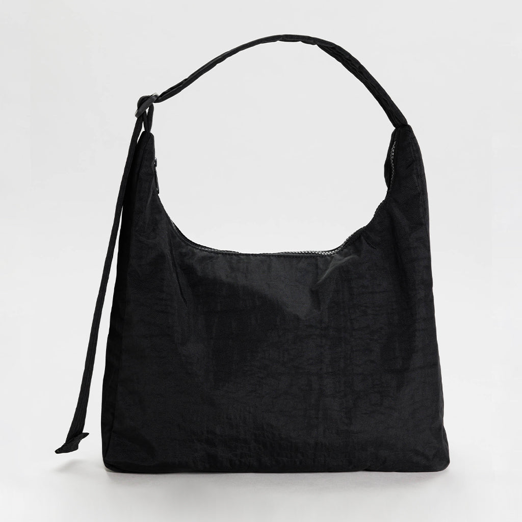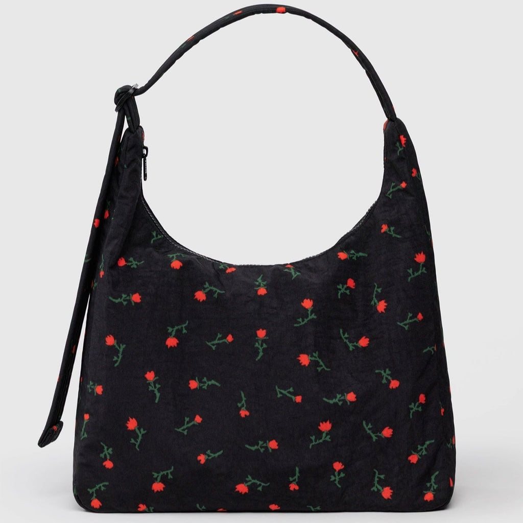 Baggu shoulder bags are made of recycled heavyweight nylon with recycled ripstop lining, with an adjustable 27.5" quilted strap. The shoulder bag is machine washable for maximum convenience. Includes key leash inside.