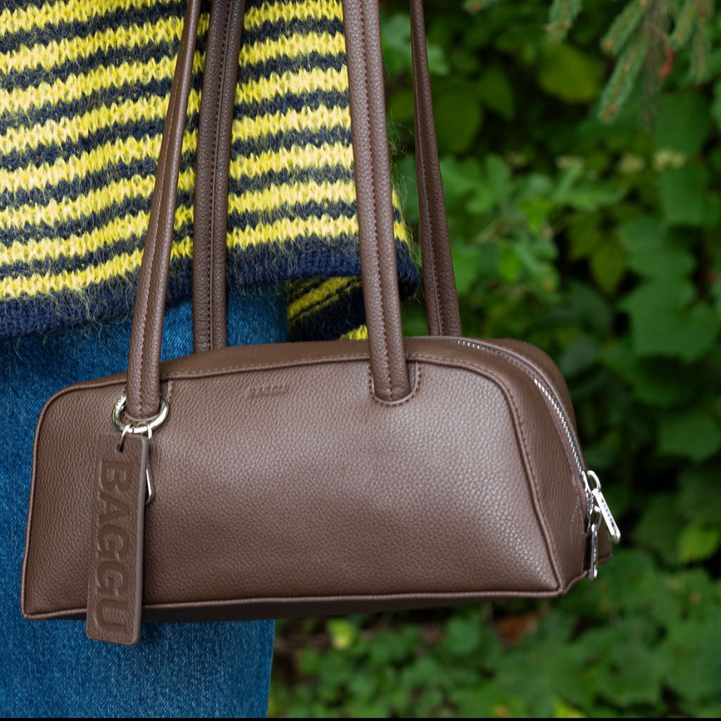 BagguA small recycled leather bowler bag designed to be accessorized, with four charm loops and a clip ring. An interior zip pocket keeps things secure and in reach. Fits your phone, wallet, keys, and more.