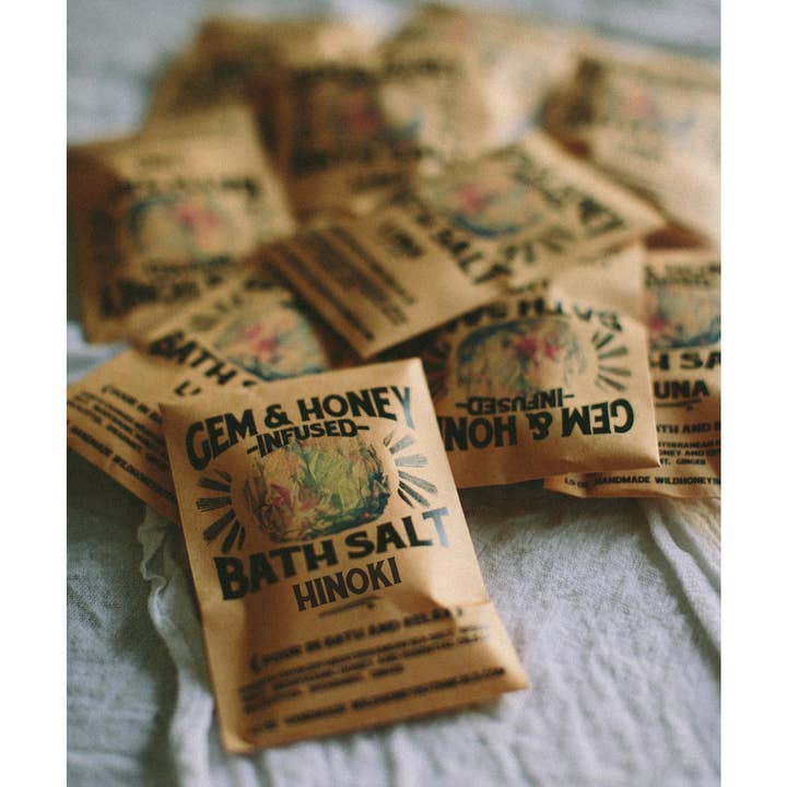 Wild Yonder BotanicalsA mixture of crystal quartz charged sea salt, epsom salt, bio dynamic honey, organic jojoba and organic essential oils and resins. Hand blended and full of good vibrations. No synthetics, junk or otherwise nastiness.