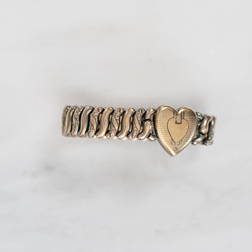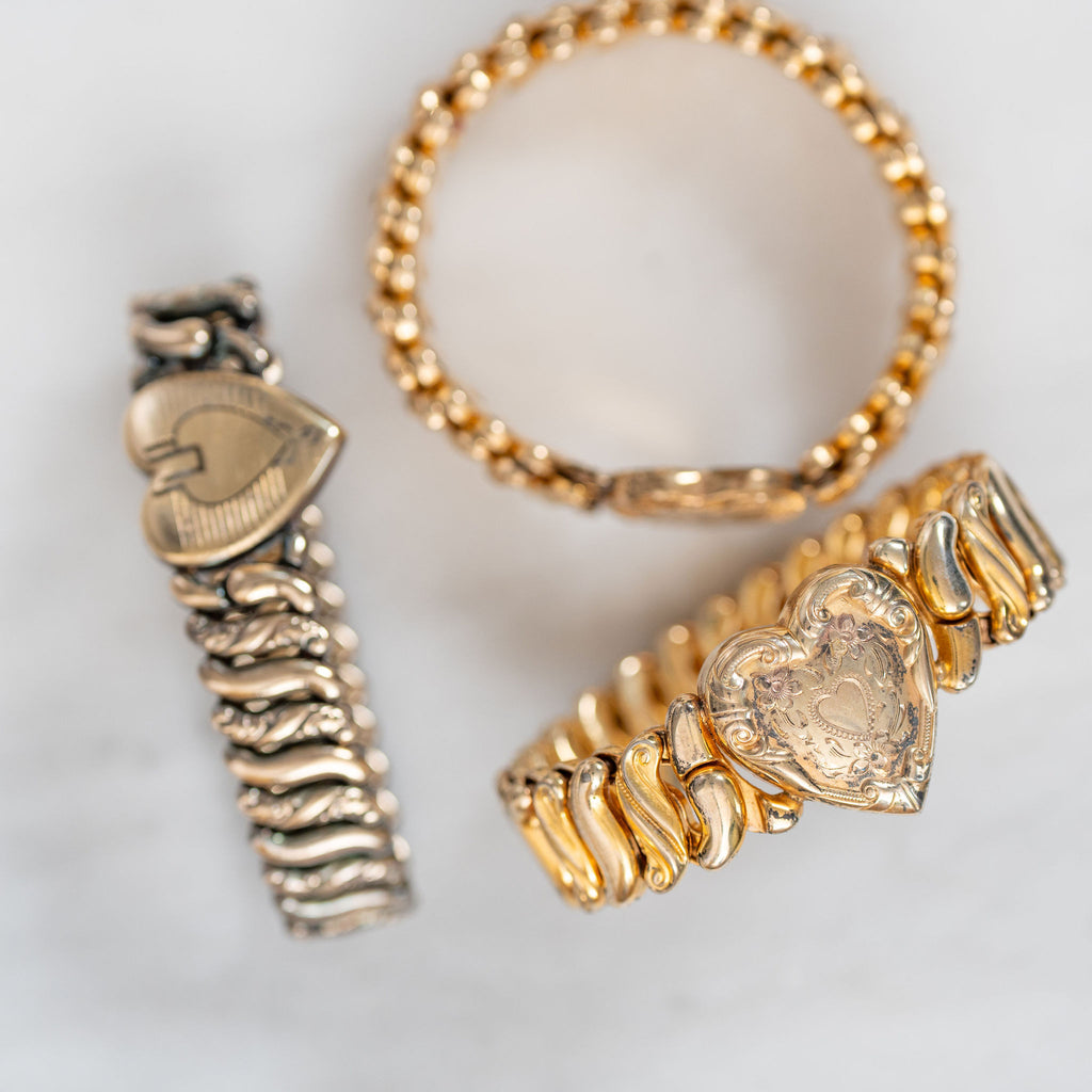 Curated gold fill/sterling silver vintage sweetheart expansion bracelets, by J'adore Beddor Vintage.