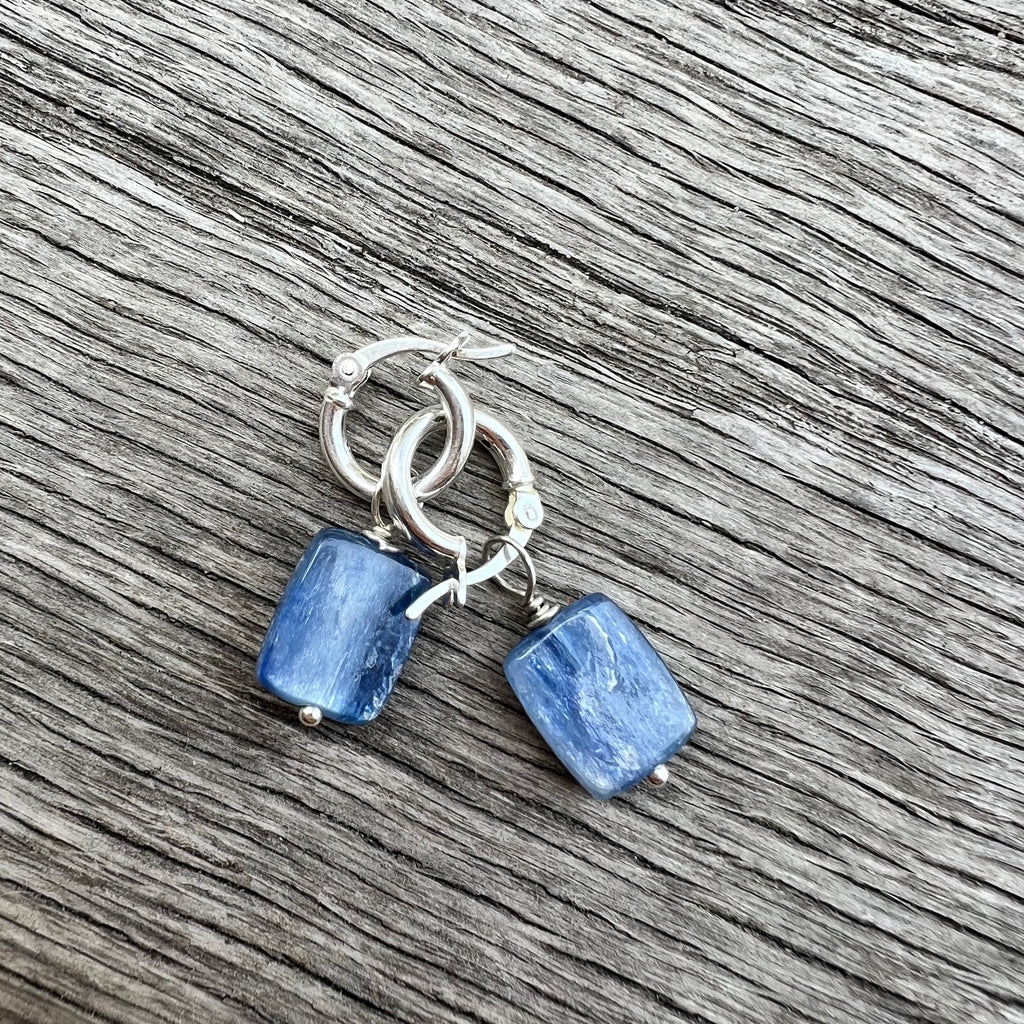 Smooth Kyanite on 14 kt Gold Fill or Sterling Silver hoops.