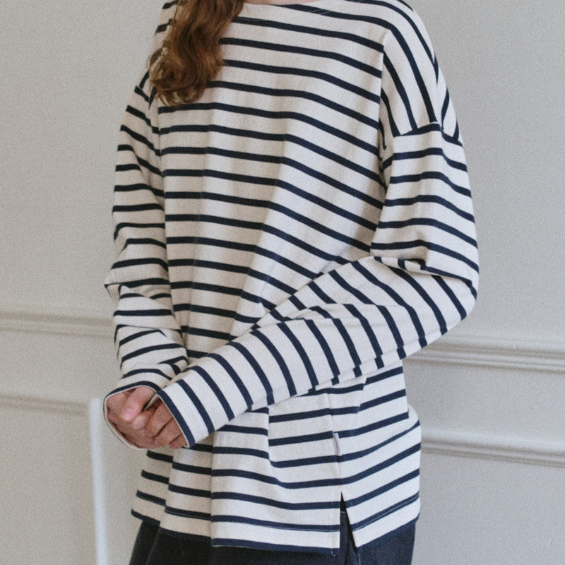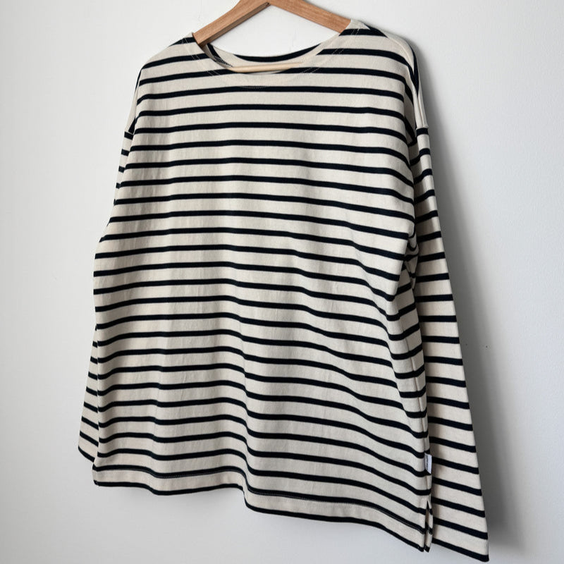 Le Bon ShoppeAdd a touch of Parisian flair to your wardrobe. The Marseille Top takes inspiration from the timeless Breton stripe uniform, featuring a classic boat neckline and an oversized, full-length fit that gently sweeps the hips. Crafted from durable, heavyweight cotton, it offers structure without sacrificing softness, making it an ideal choice for both elevated and casual looks.