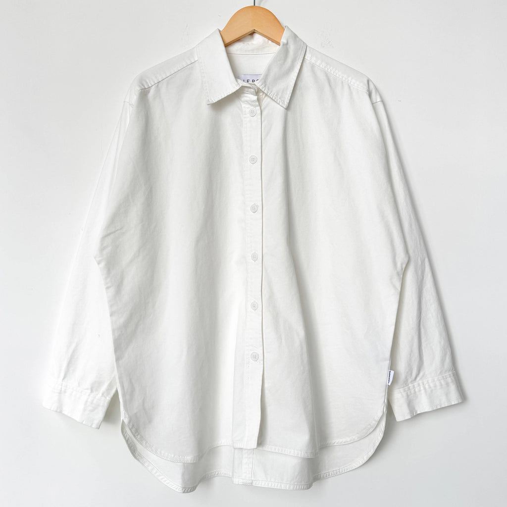 Le Bon ShoppeThe classic denim shirt, reimagined. It fits like the perfect vintage '90s piece—slightly oversized and relaxed for easy layering, or wear it as a lightweight jacket.Made from 100% heavy cotton denim, it’s soft yet durable, ideal for both casual and elevated looks. Featuring functional buttons, contrast stitching, and a classic rounded hem, it's a timeless, versatile wardrobe essential that transcends time.