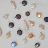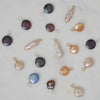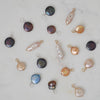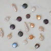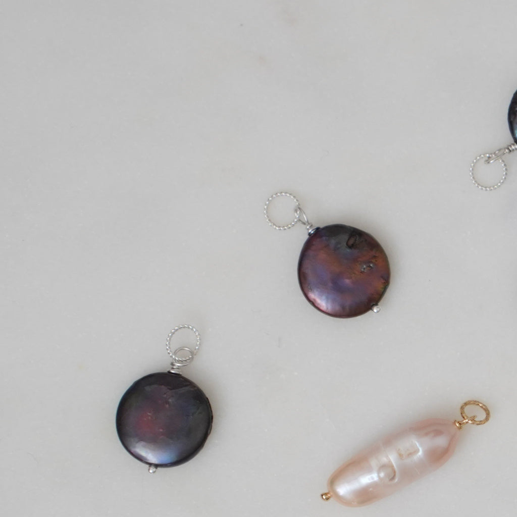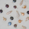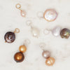 Assorted freshwater pearls in varying shapes, sizes, and colors on sterling silver and 14kt gold fill closed rings and loops large enough to string onto most chains, attach to front clasp necklaces, or add to charm bracelets and necklaces.